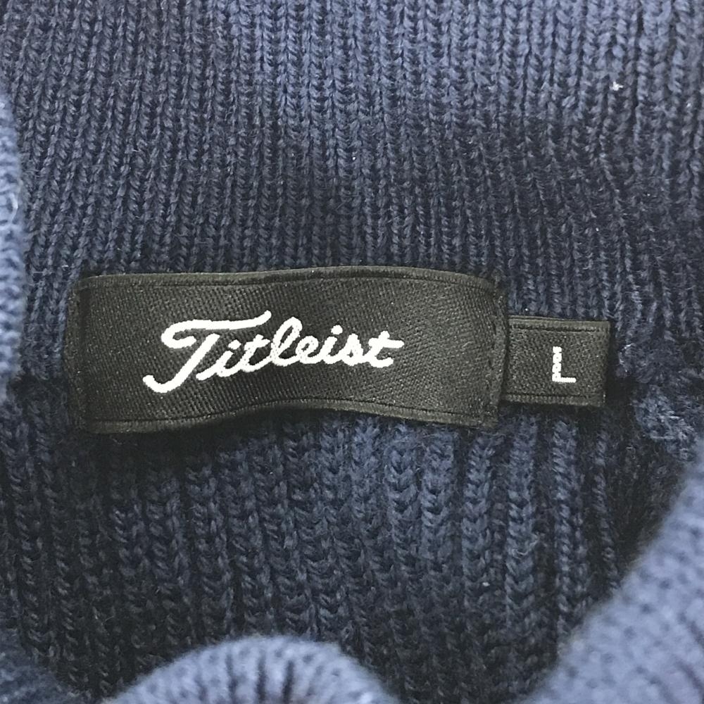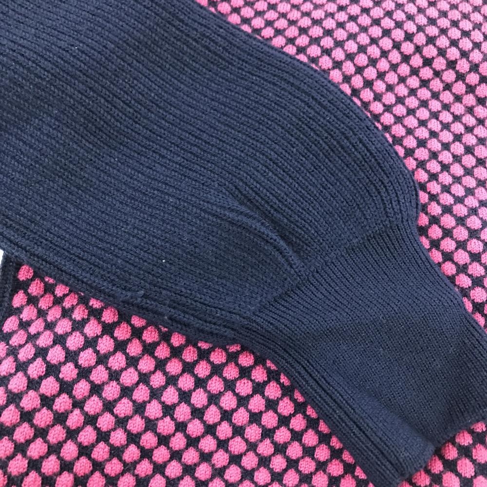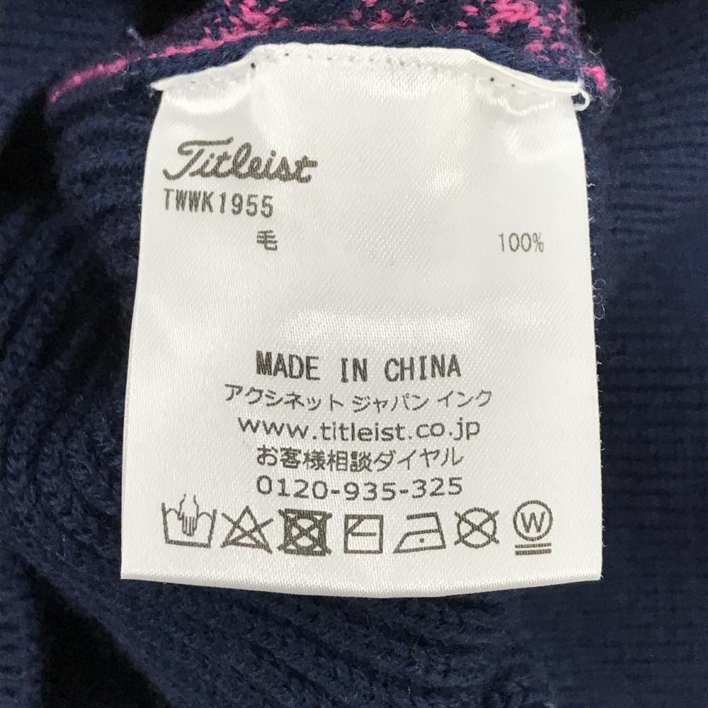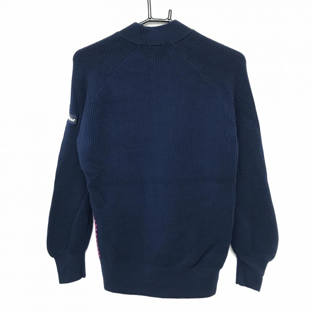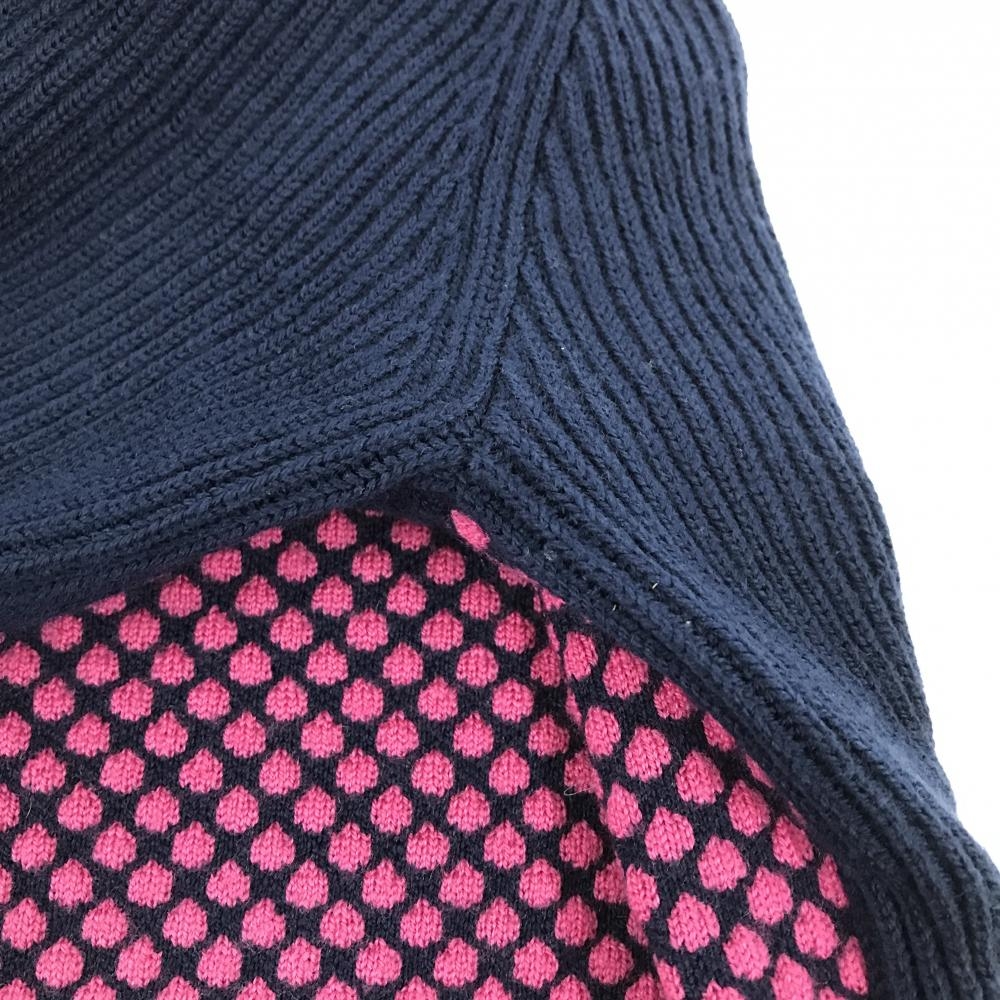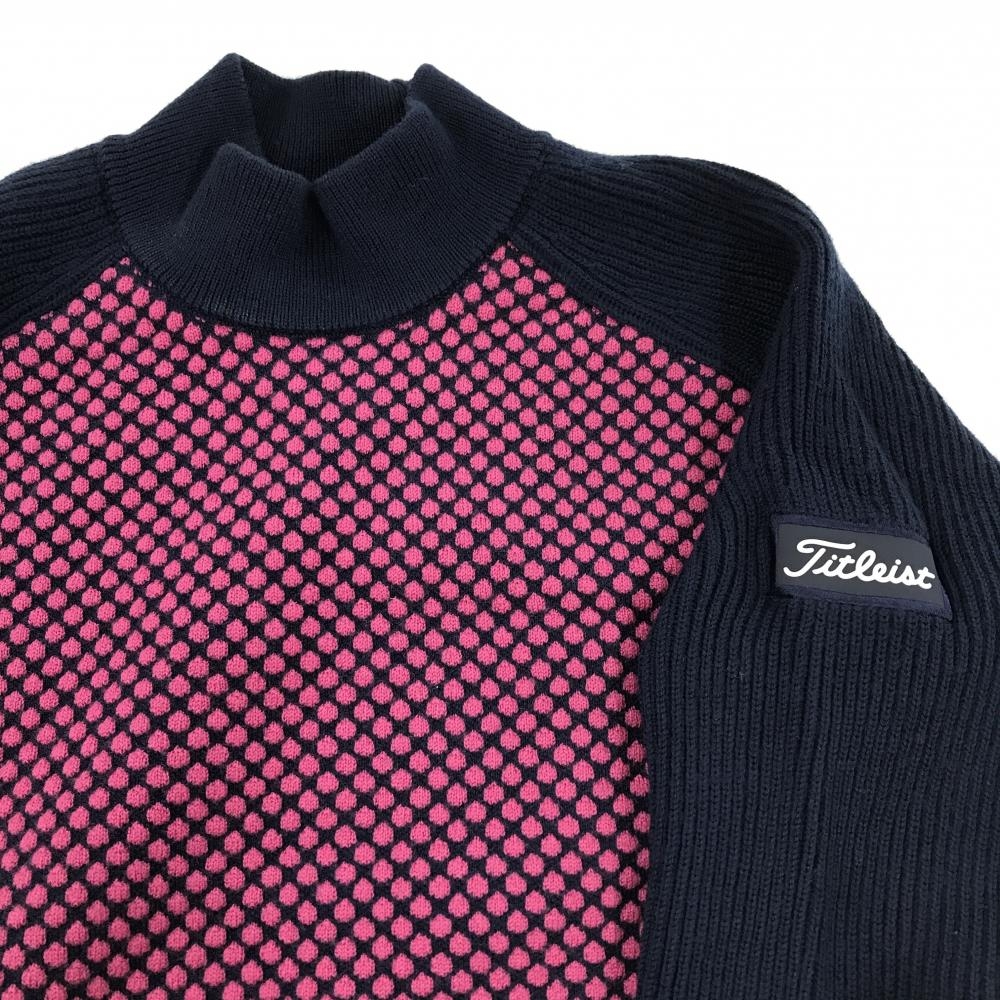 【美品】タイトリスト ハイネックセーター ネイビー×ピンク 前身頃ドット柄 ウール100% ニット レディース L ゴルフウェア TITLEIST