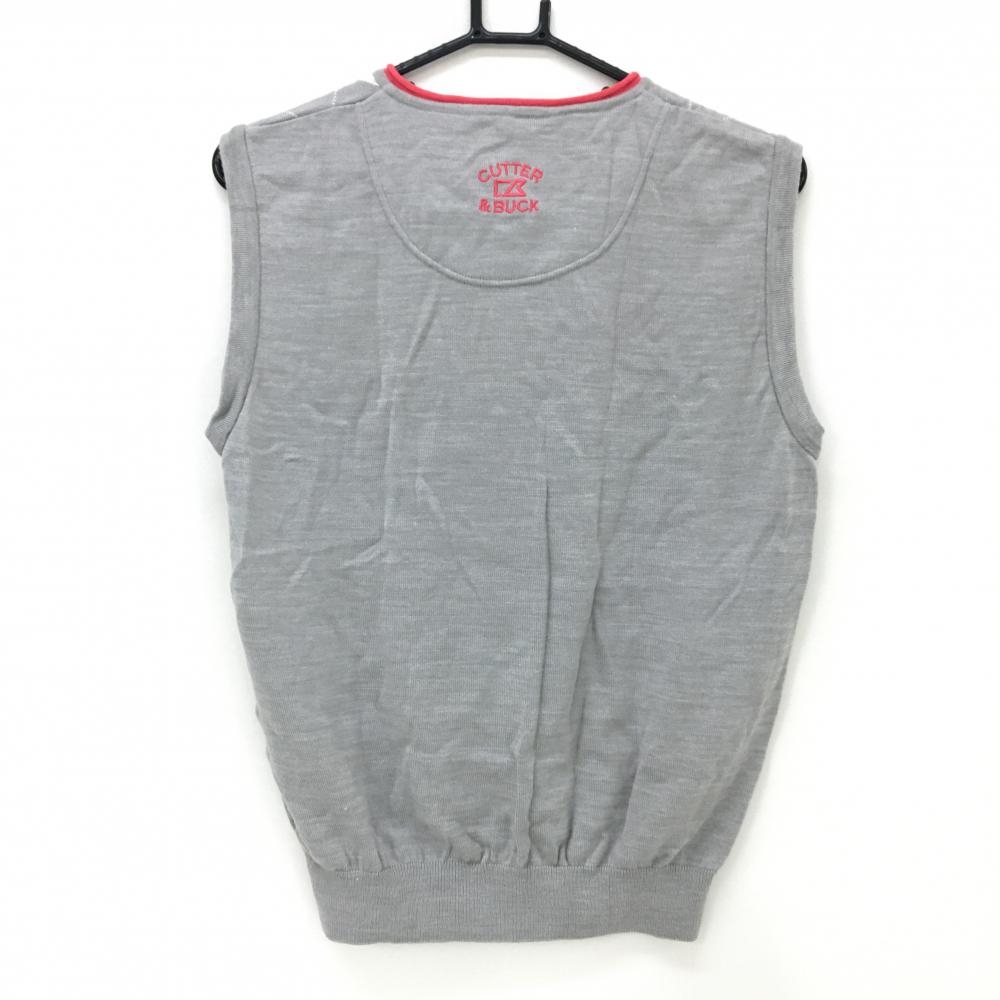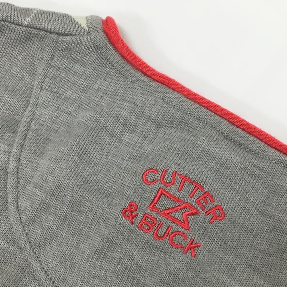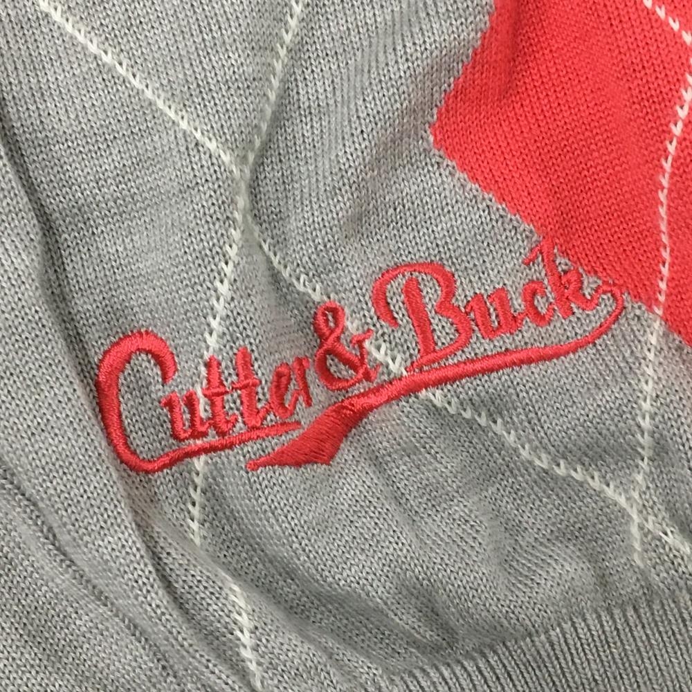 【美品】カッターアンドバック ニットベスト グレー×ピンク アーガイル柄 ウール混 メンズ L ゴルフウェア CUTTER&BUCK