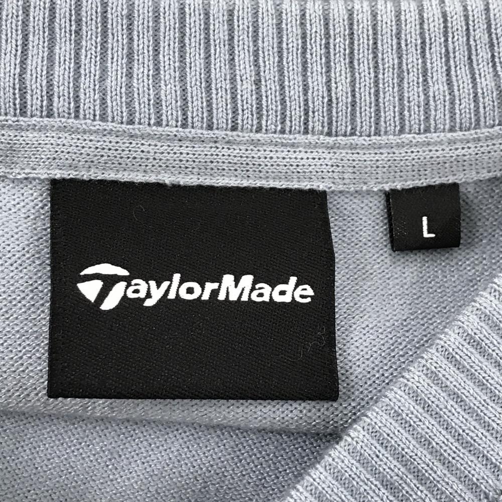 【美品】テーラーメイド セーター ブルーグレー×黒 ウール混 Vネック ニット メンズ L ゴルフウェア TaylorMade