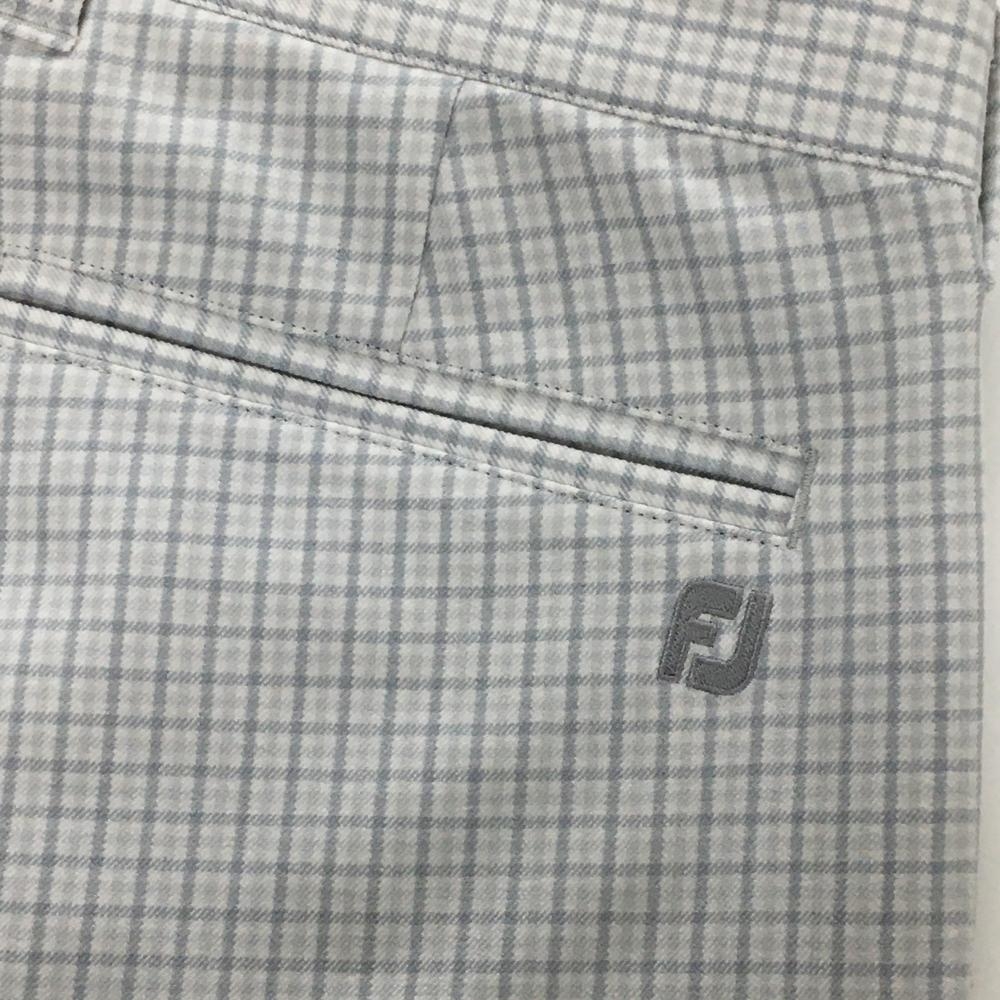 【超美品】フットジョイ パンツ 白×グレー チェック ロゴ刺しゅう メンズ L ゴルフウェア FootJoy