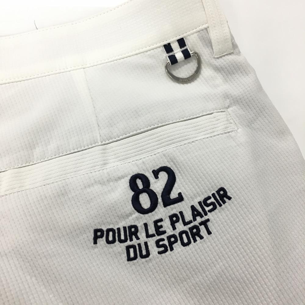 【美品】ルコックゴルフ パンツ 白 地模様 ロゴ刺しゅう 裏地メッシュ メンズ 92 ゴルフウェア le coq sportif