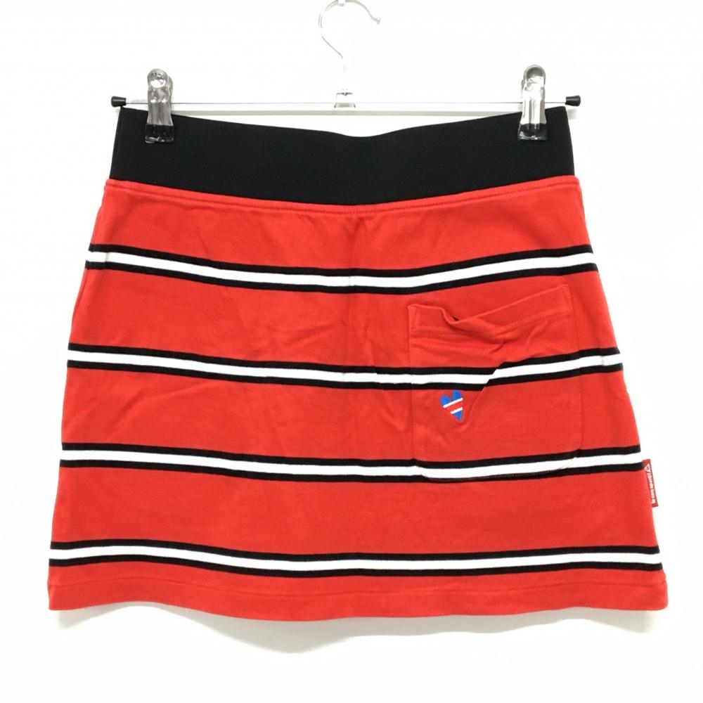 【美品】ルコック スカート レッド×黒 ボーダー ストレッチ ウエストゴム レディース 7 ゴルフウェア le coq sportif