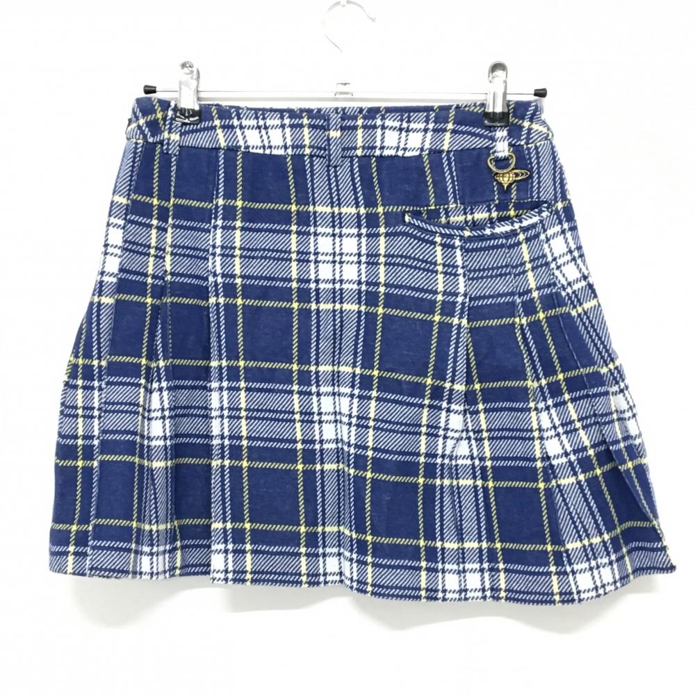 ビームスゴルフ スカート ネイビー×白 チェック コットン混 蓄熱裏地 レディース M ゴルフウェア BEAMS GOLF