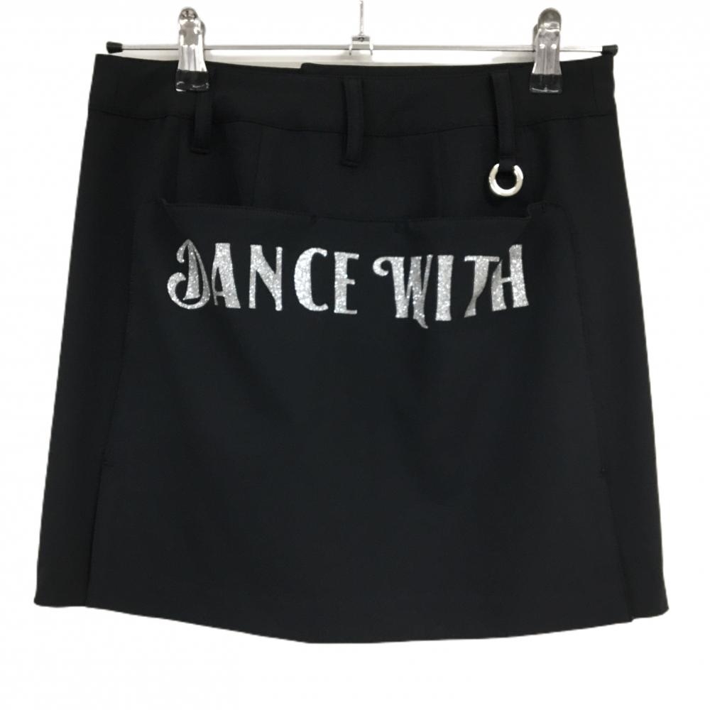 【超美品】ダンスウィズドラゴン スカート 黒 ロゴラメ ラインストーン レディース 1(S) ゴルフウェア Dance With Dragon