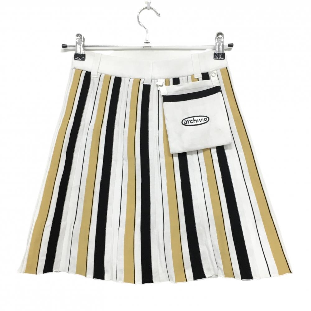 アルチビオ ニットスカート 白×イエロー系 ストライプ ポケット着脱可 レディース 36(S) ゴルフウェア archivio