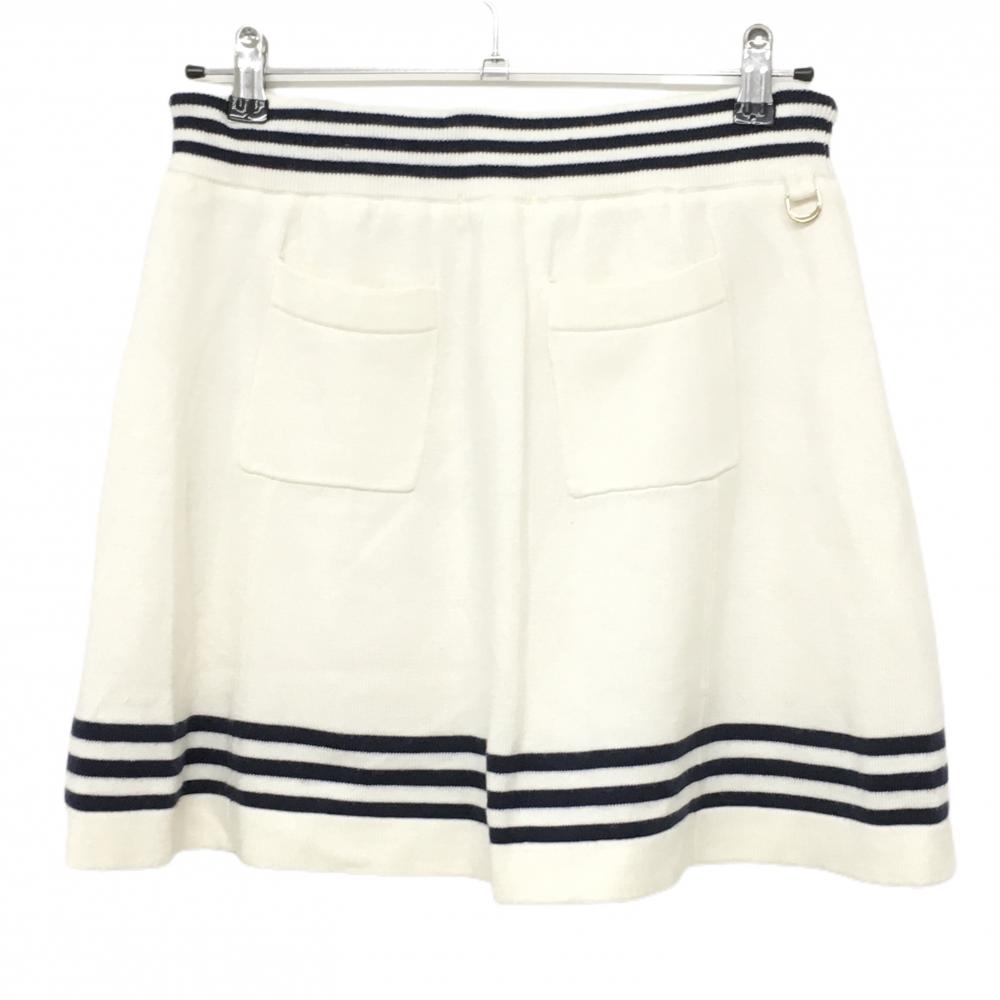 【美品】ビバハート ニットスカート 白×ネイビー 裏地付き ウエストゴム ストレッチ レディース 40(M) ゴルフウェア VIVA HEART