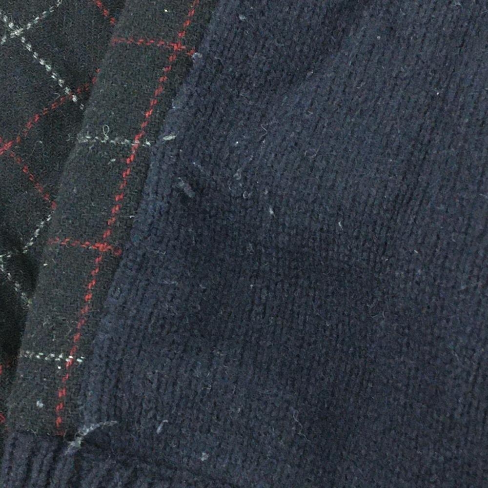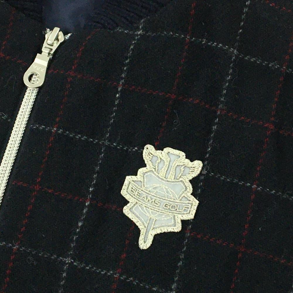 ビームスゴルフ 切替ニットジャケット ネイビー×レッド 前身頃格子チェック ウール混 裏地付 レディース L ゴルフウェア BEAMS GOLF