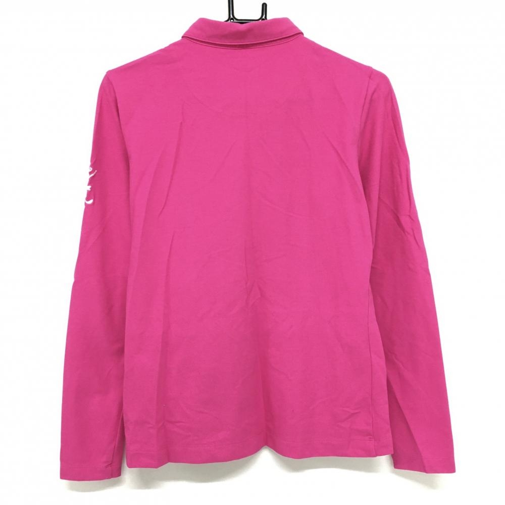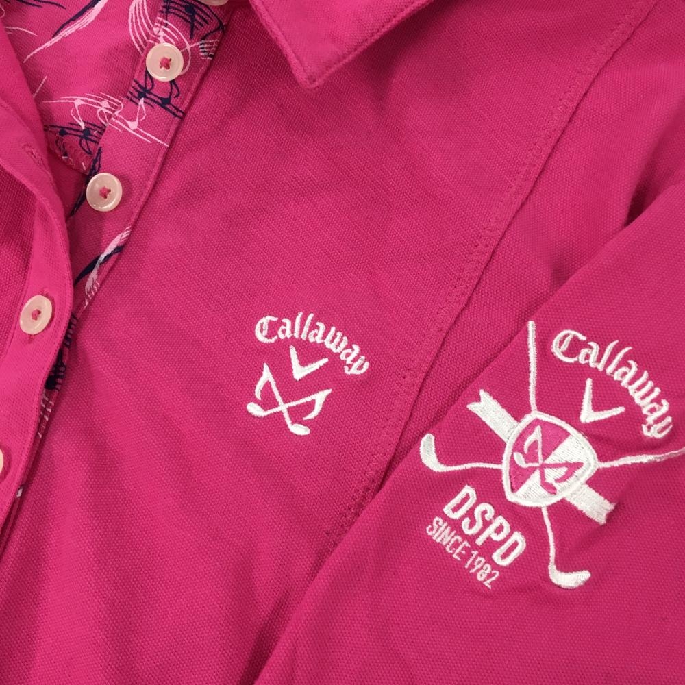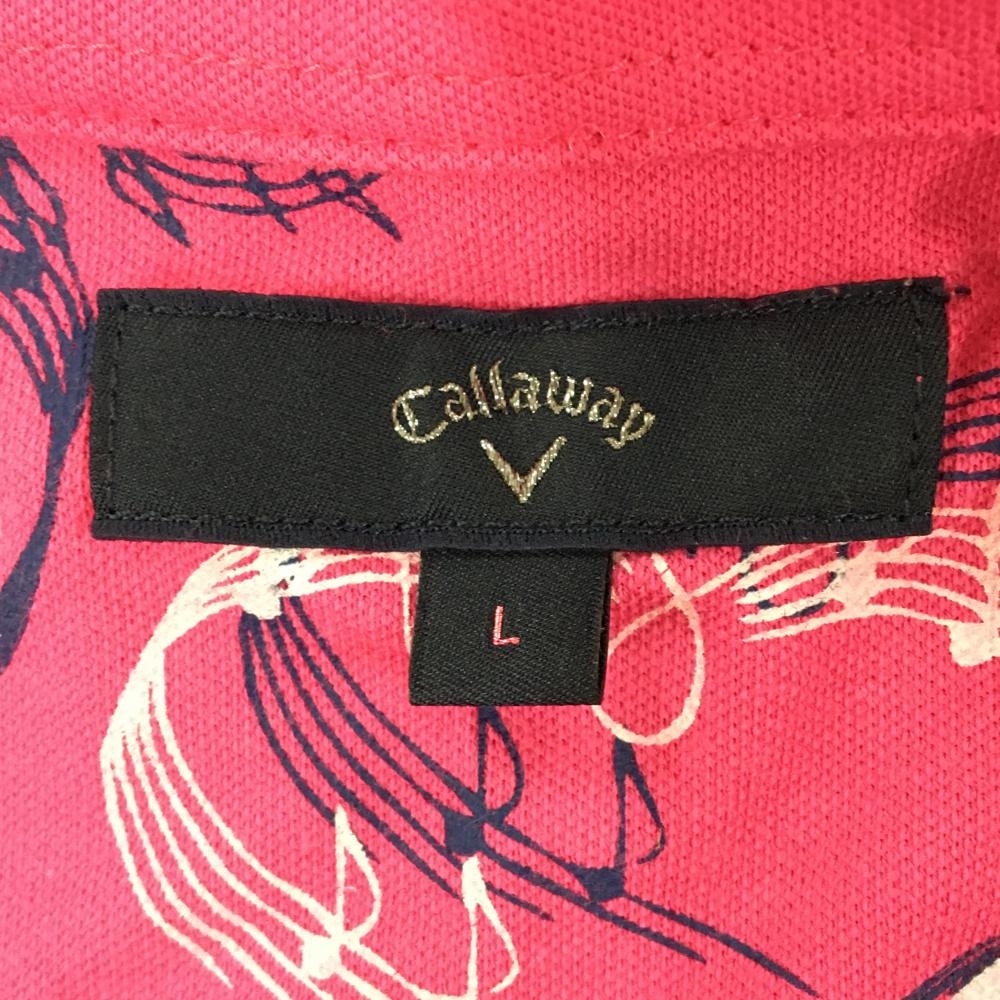 キャロウェイ 長袖ポロシャツ ピンク ロゴ白 前立て内側総柄 レディース L ゴルフウェア Callaway