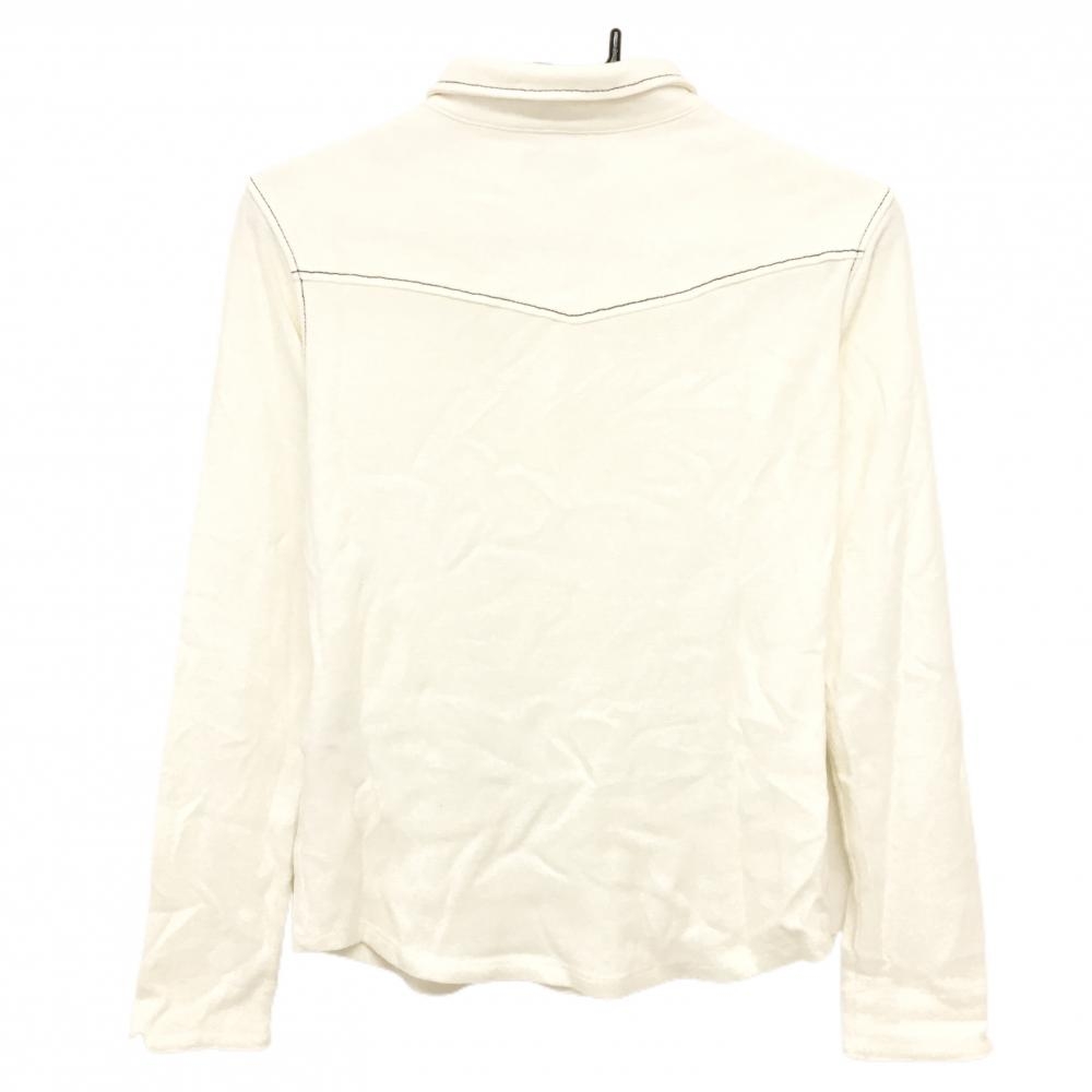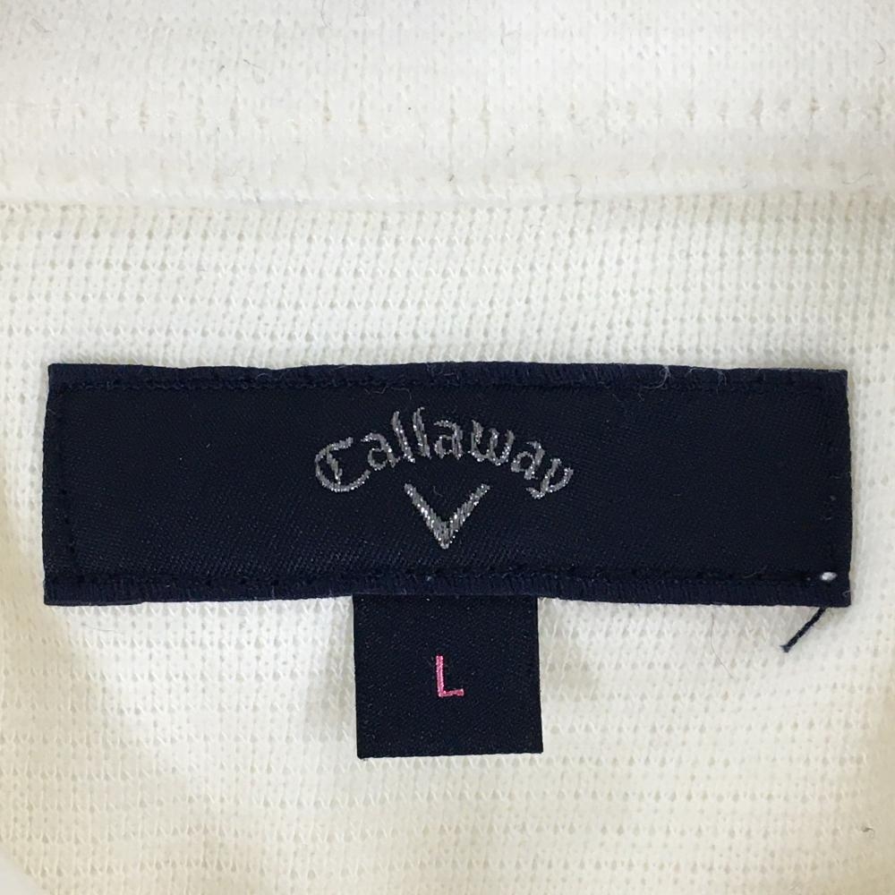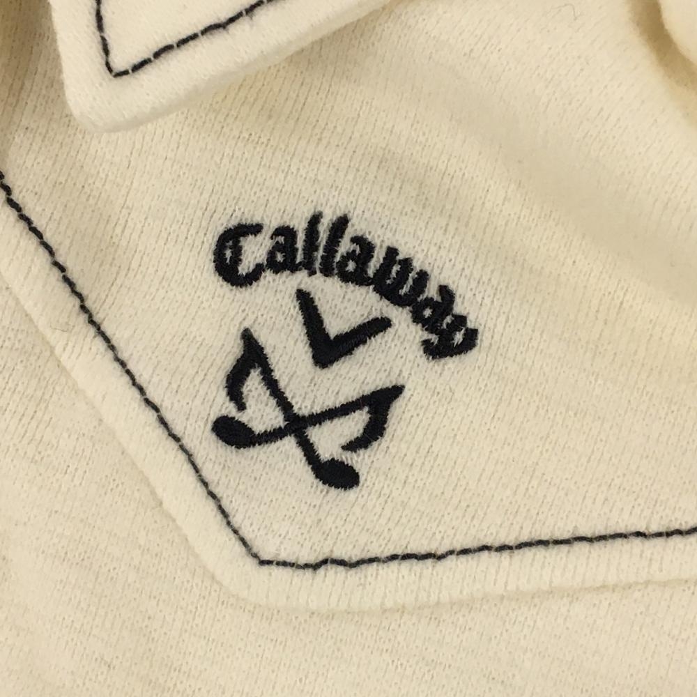 【美品】キャロウェイ 長袖ポロシャツ 白×ネイビー 微起毛 ロゴ刺しゅう レディース L ゴルフウェア Callaway