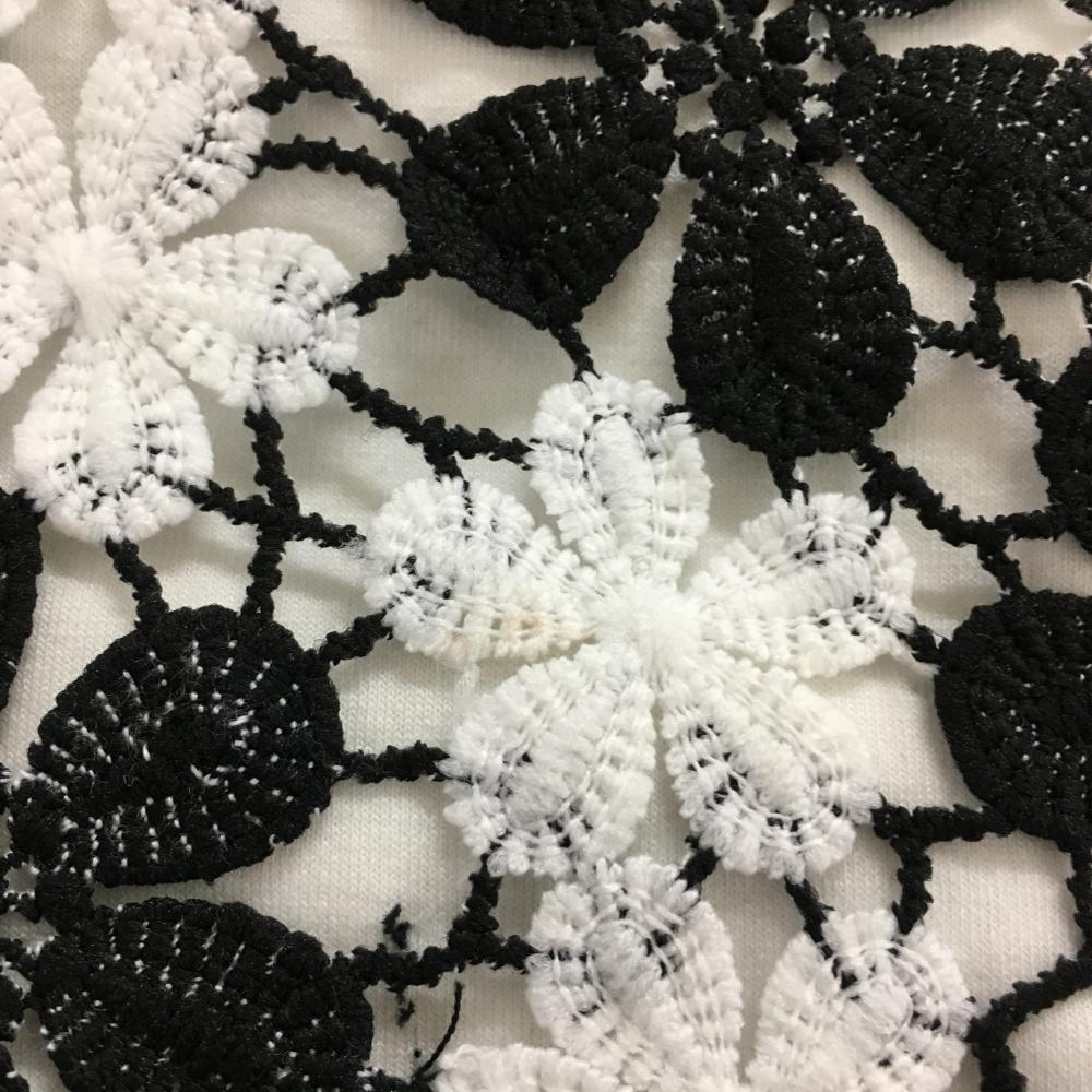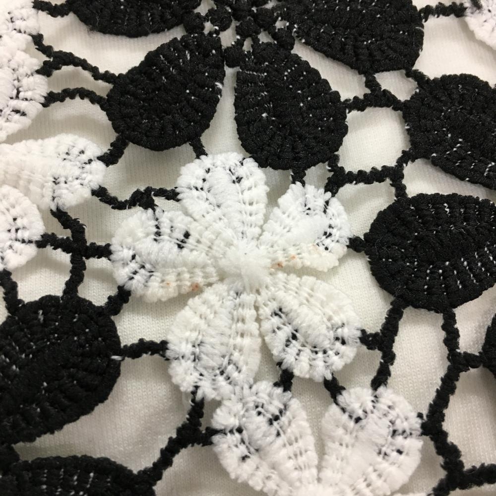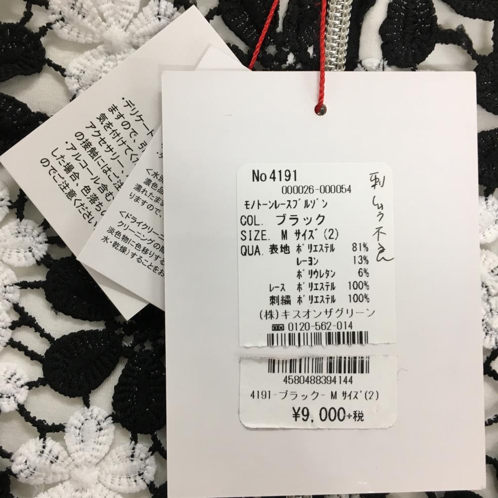 【新品】キスオンザグリーン ジャケットブルゾン 黒×白 身頃花柄 レース レディース 2(M) ゴルフウェア kiss on the green