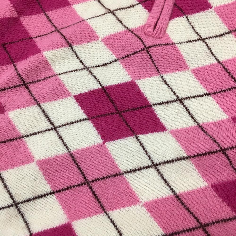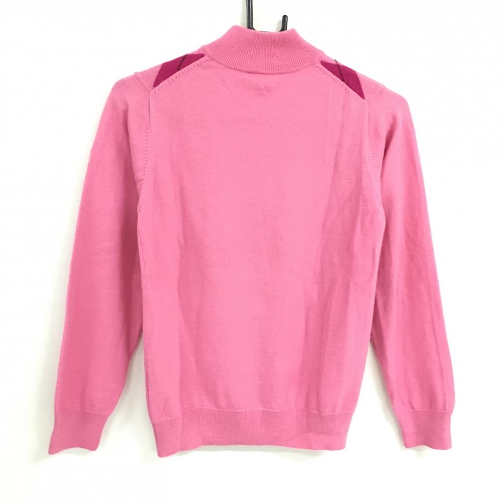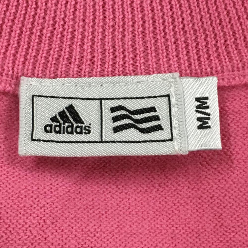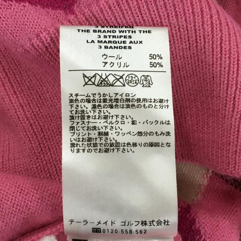 アディダス ハイネックセーター ピンク×白 前身頃アーガイル柄 ハーフジップ ニット レディース M/M ゴルフウェア adidas