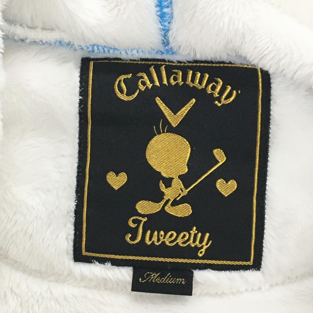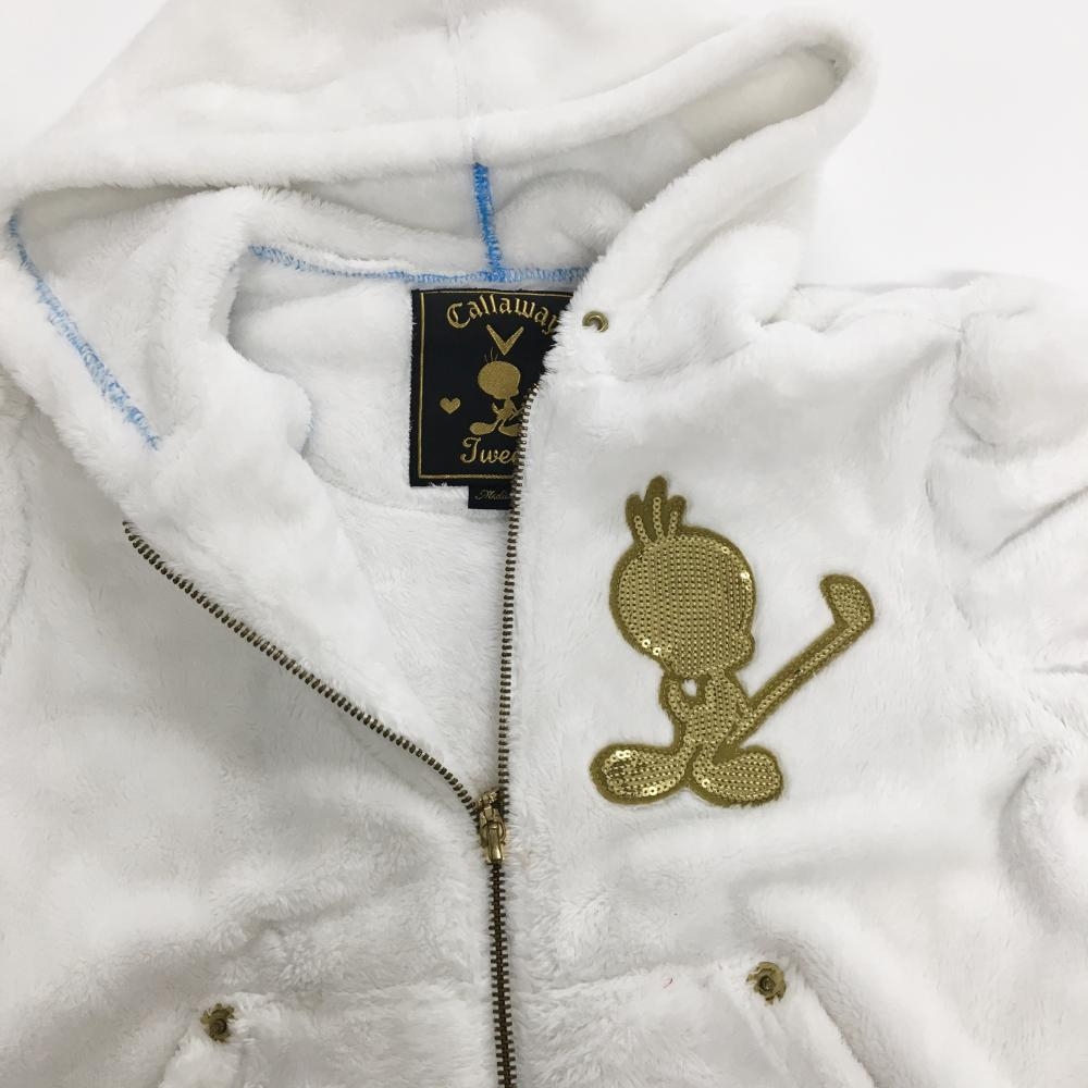 【美品】キャロウェイ×Tweety 半袖ボアパーカー 白×ゴールド スパンコールロゴ ブルゾン レディース M ゴルフウェア Callaway