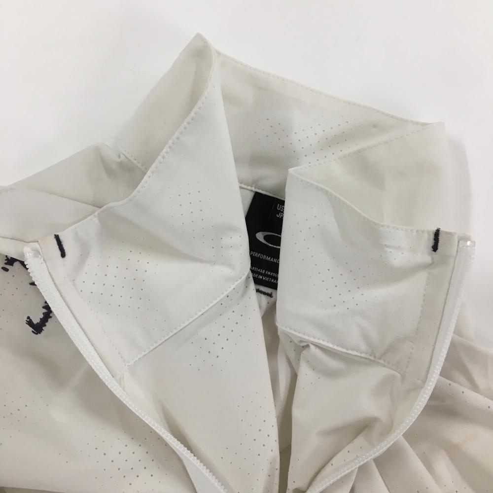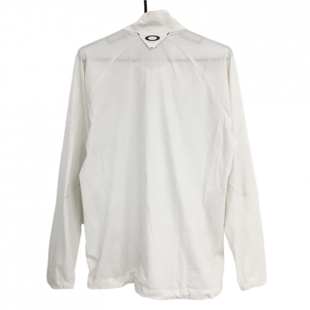 オークリー ジャケット 白 一部メッシュ調 ロゴグレー 裾ドローコード メンズ L ゴルフウェア Oakley