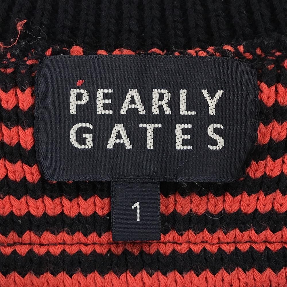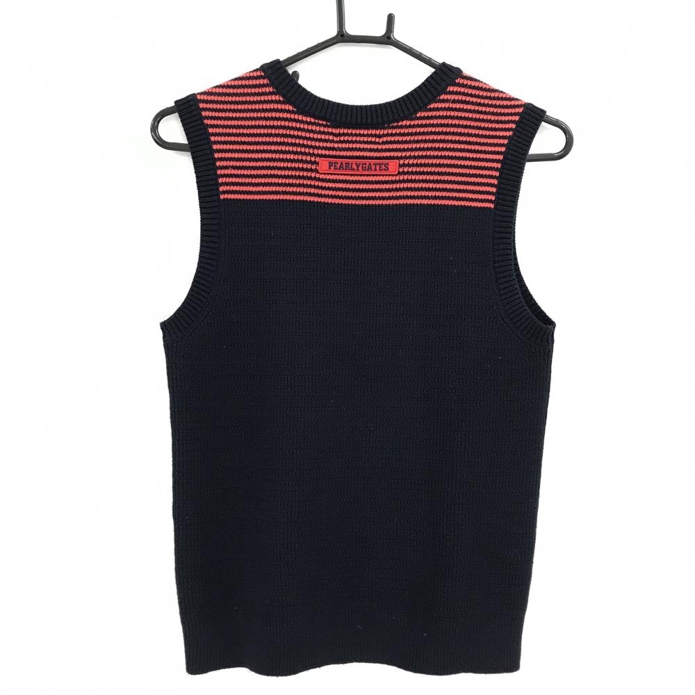 【超美品】パーリーゲイツ ニットベスト ネイビー×レッド 肩ボーダー コットン混 レディース 1(M) ゴルフウェア PEARLY GATES
