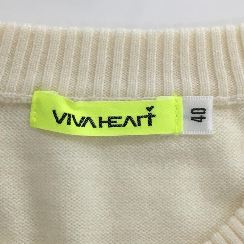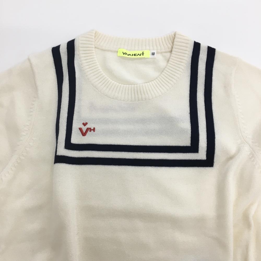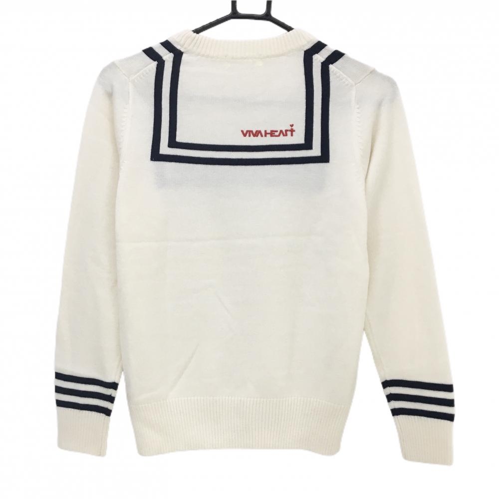 【美品】ビバハート セーター アイボリー×ネイビー ロゴ刺しゅう ウール混 ニット レディース 40(M) ゴルフウェア VIVA HEART