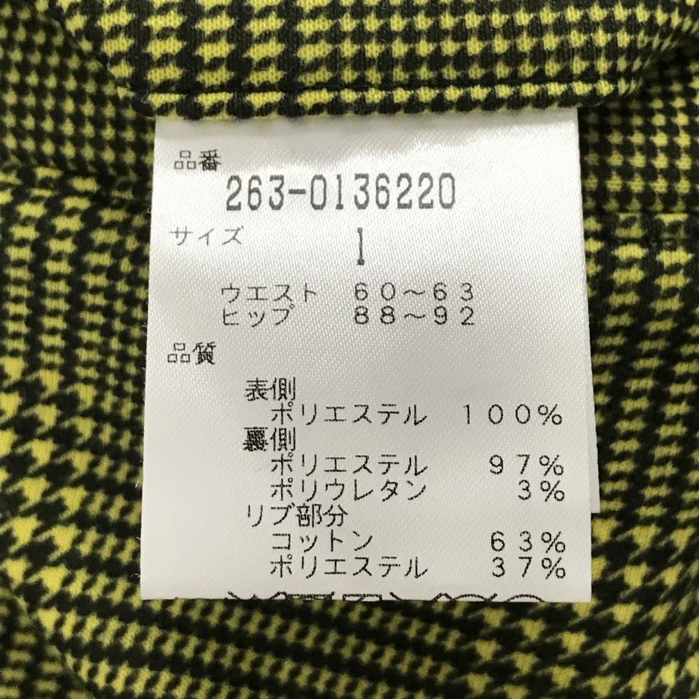 【超美品】ジャックバニー パンツ 黒×イエロー グレンチェック ウエストゴム レディース 1(M) ゴルフウェア Jack Bunny