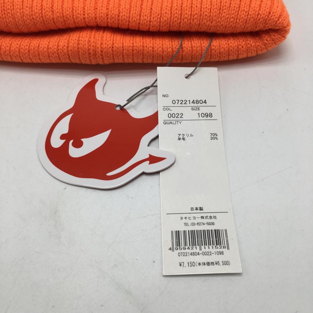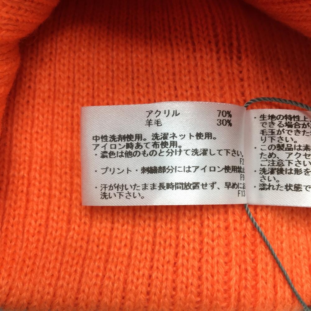 【新品】ワック ニット帽 オレンジ×黒 フロントロゴ ウール混 1098 ゴルフウェア WAAC
