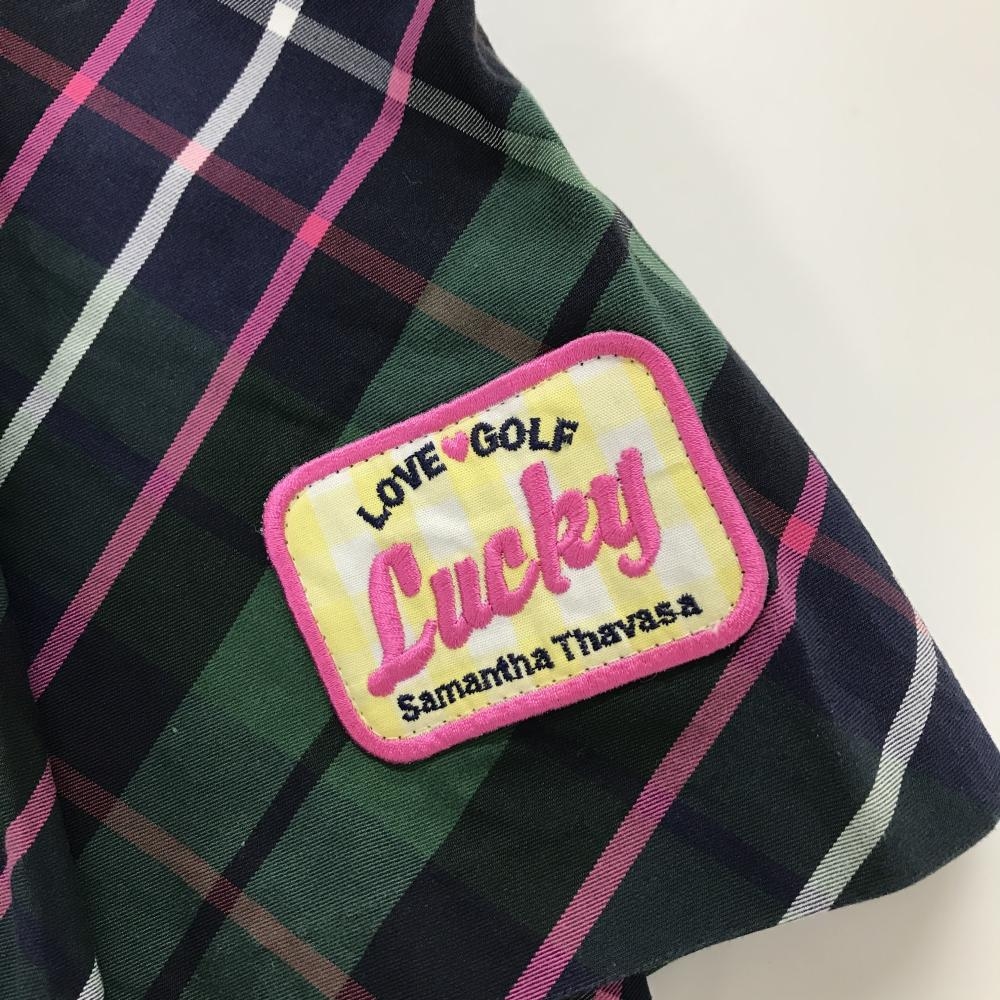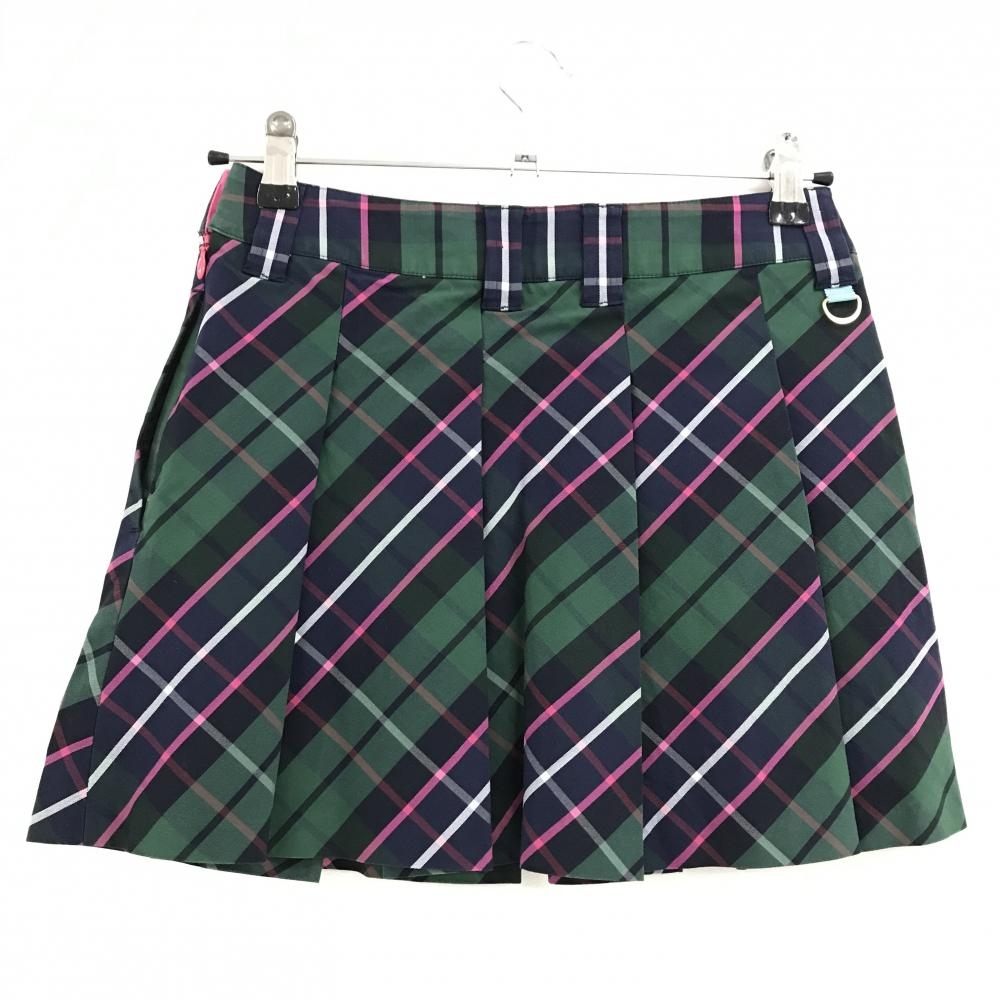 【美品】サマンサタバサ プリーツスカート グリーン×ネイビー チェック レディース 36(S) ゴルフウェア Samantha Thavasa