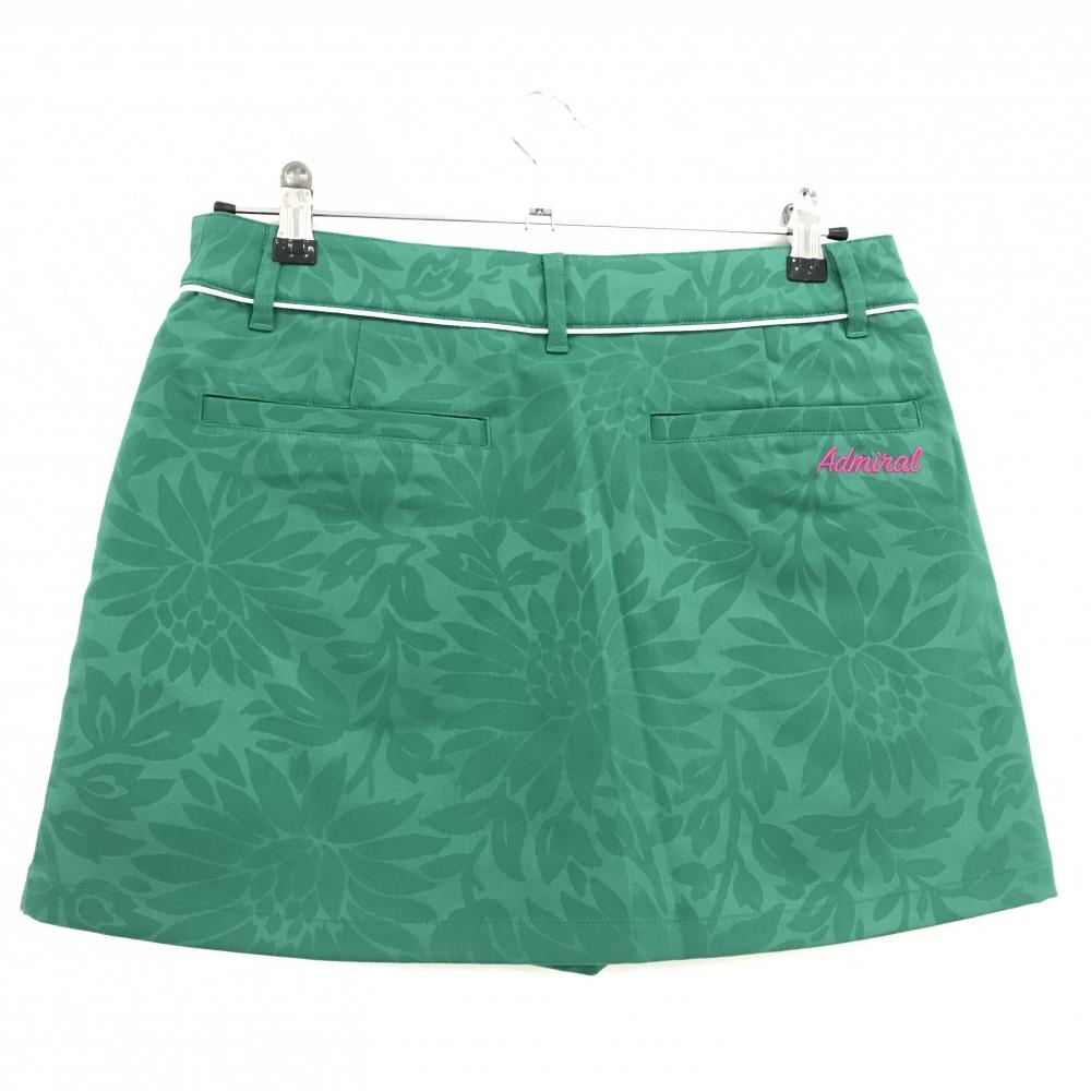 【美品】アドミラル スカート グリーン 花総地模様 ロゴピンク 内側パンツ レディース L ゴルフウェア Admiral