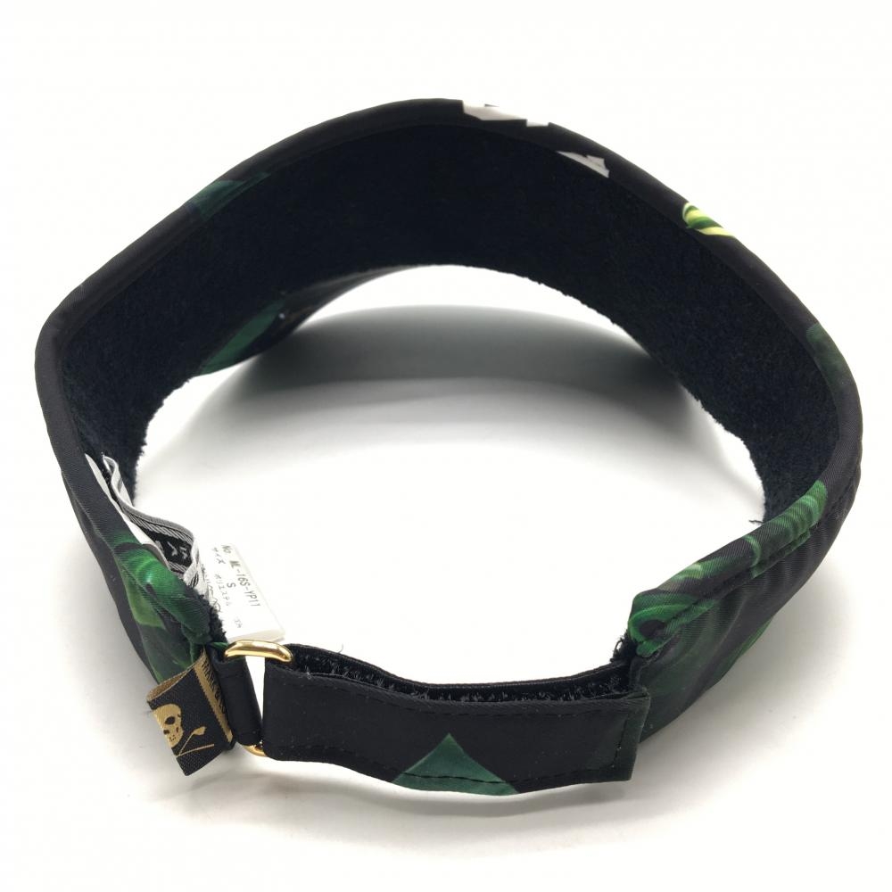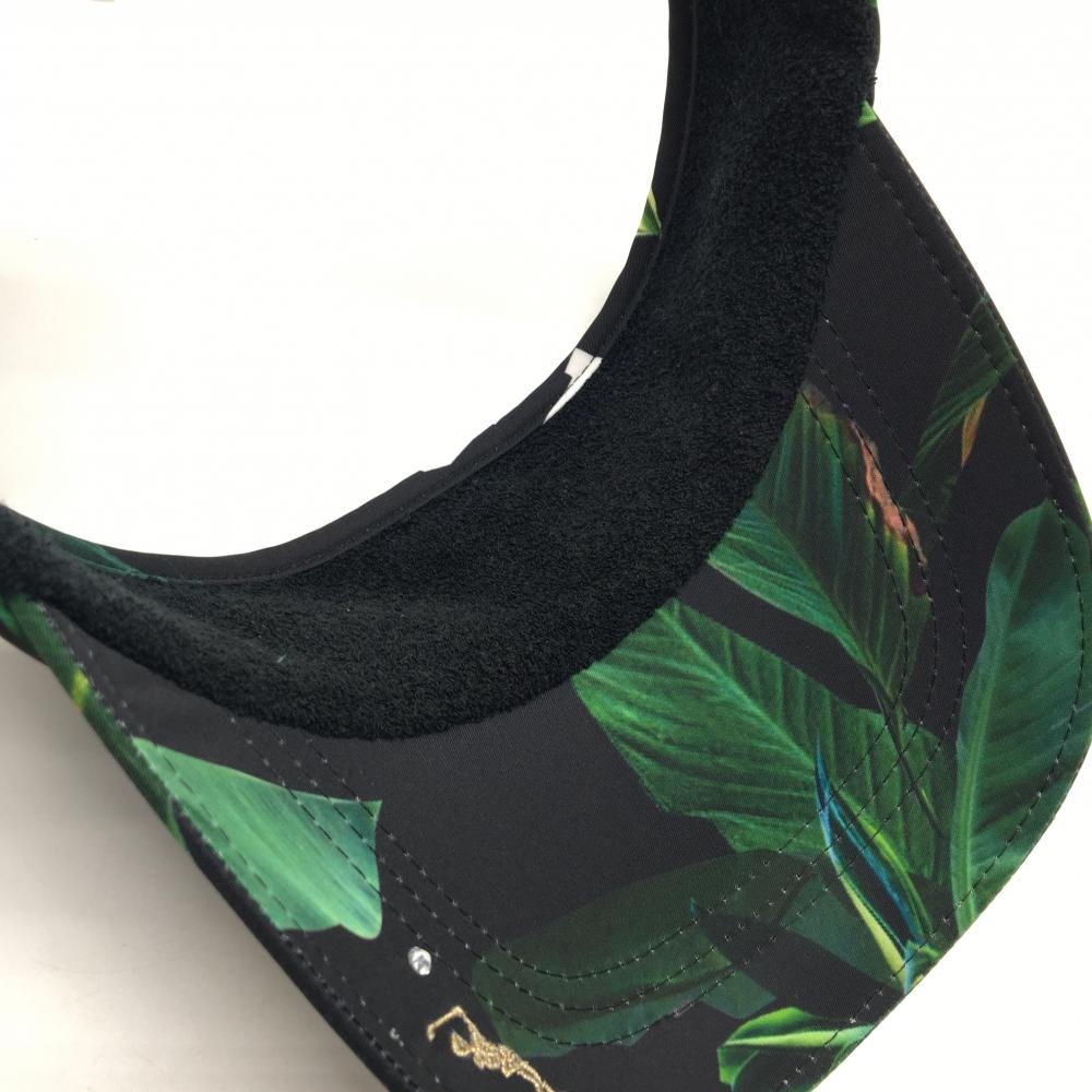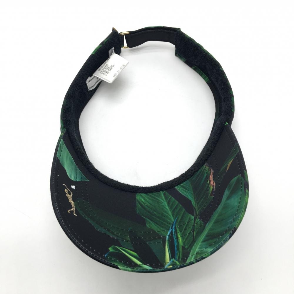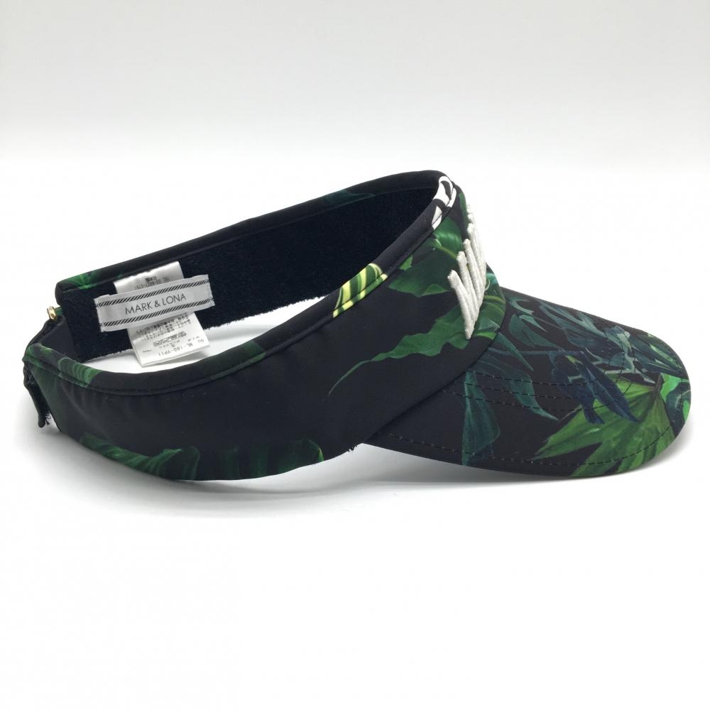 【美品】マークアンドロナ サンバイザー 黒×グリーン リーフ柄 立体ロゴ S ゴルフウェア MARK&LONA