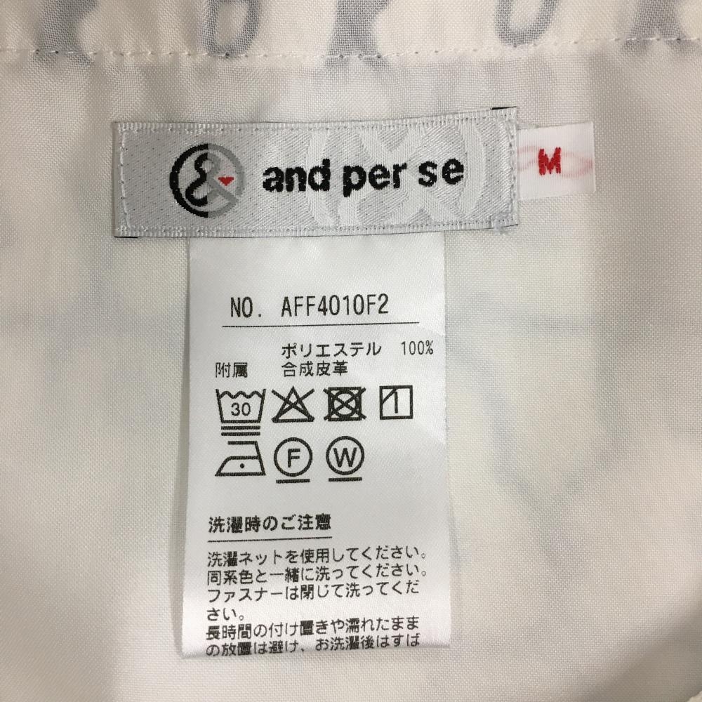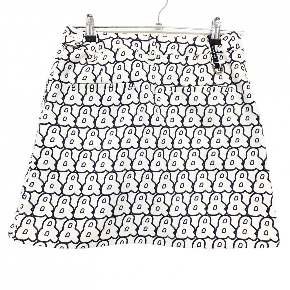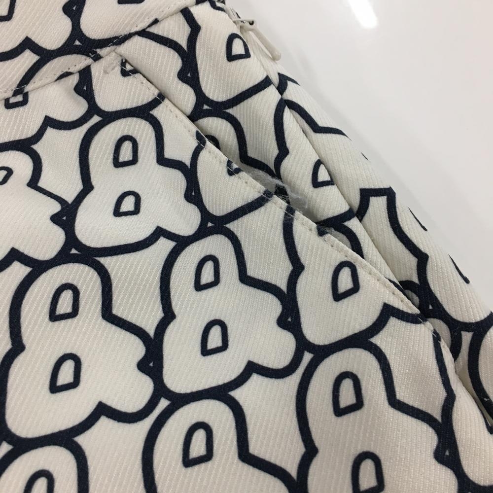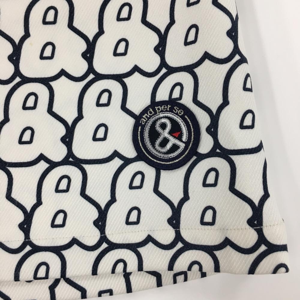 アンパスィ スカート 白×ネイビー ロゴ総柄 裾ワッペン レディース M ゴルフウェア and per se