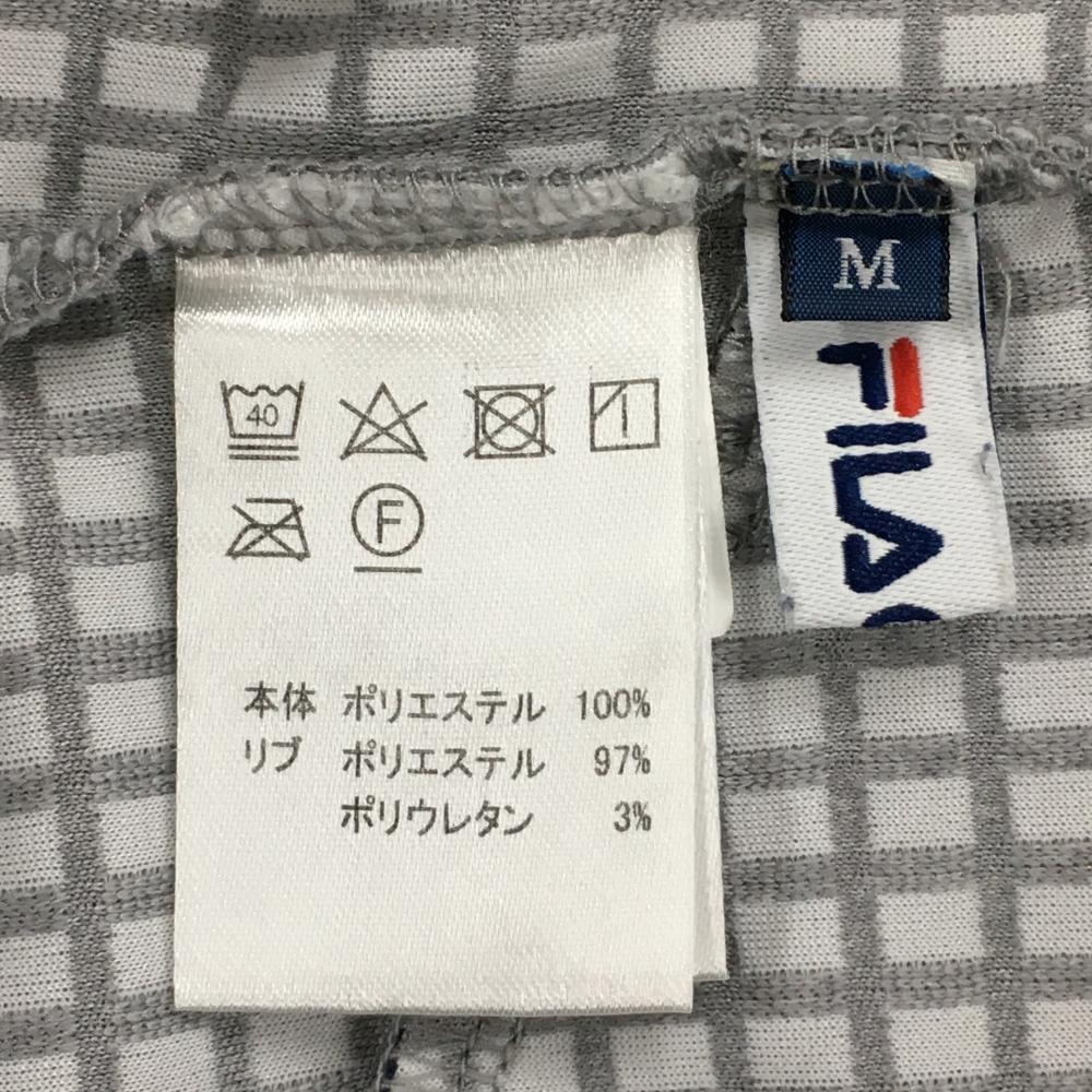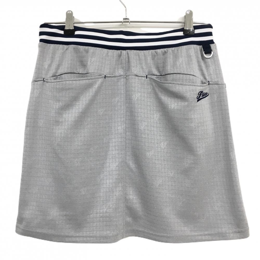 【美品】フィラゴルフ スカート グレー 格子柄地模様 ロゴ総柄 ウエストゴム レディース M ゴルフウェア FILA GOLF