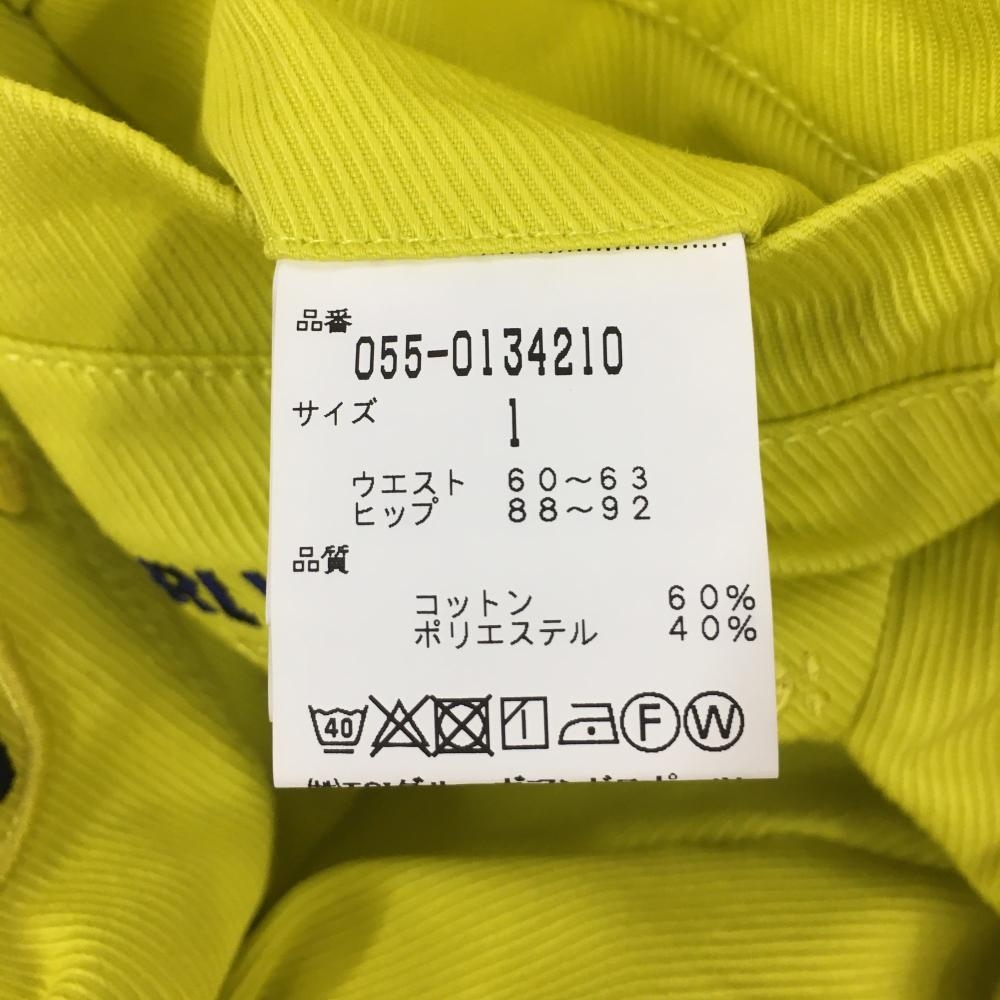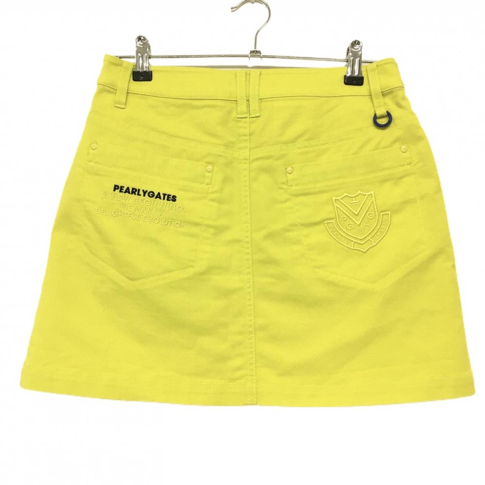 【超美品】パーリーゲイツ スカート ライムイエロー系 地模様 ロゴネイビー レディース 1(M) ゴルフウェア PEARLY GATES