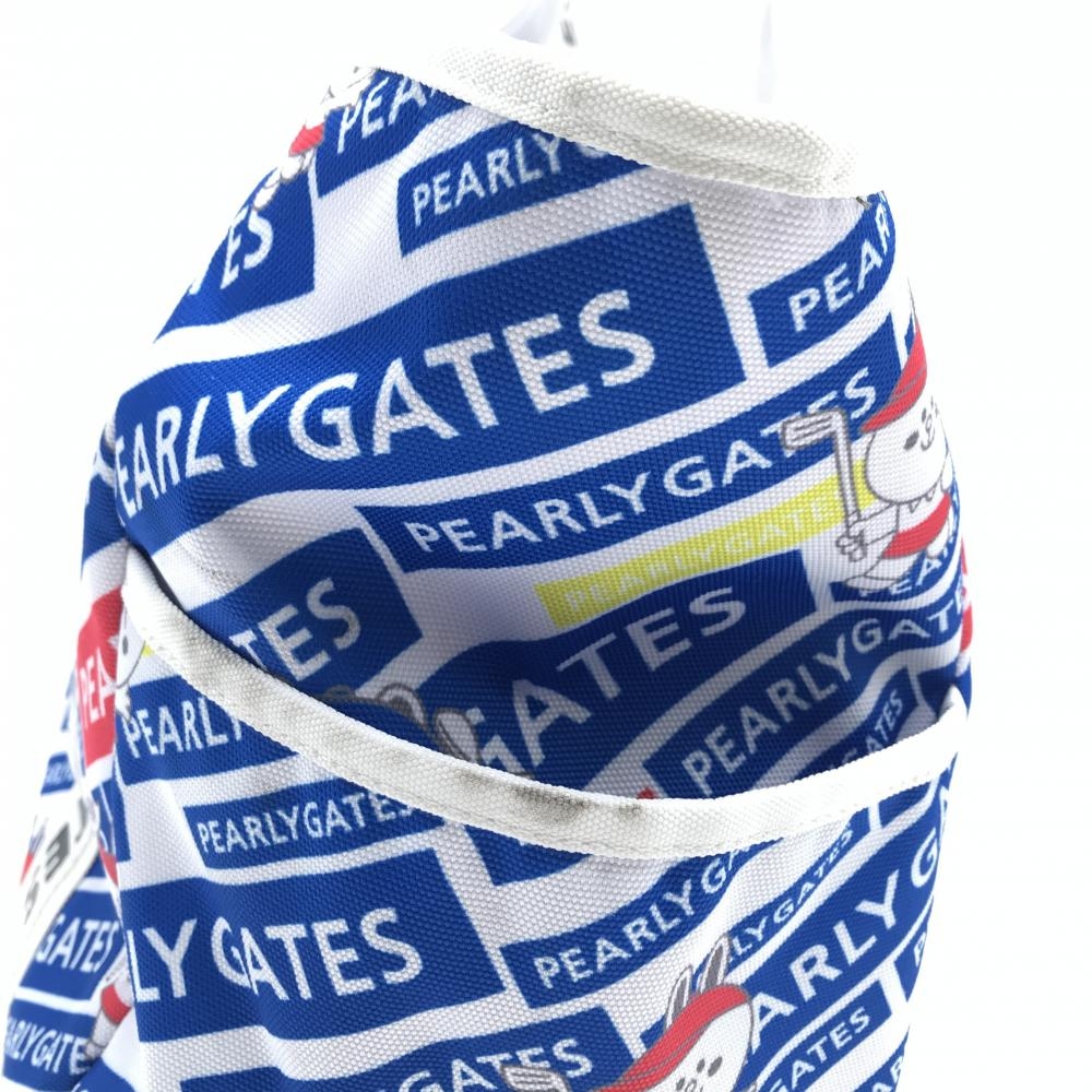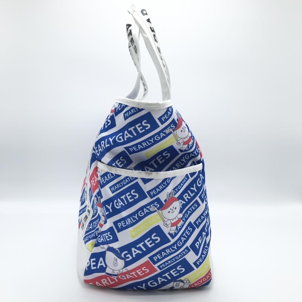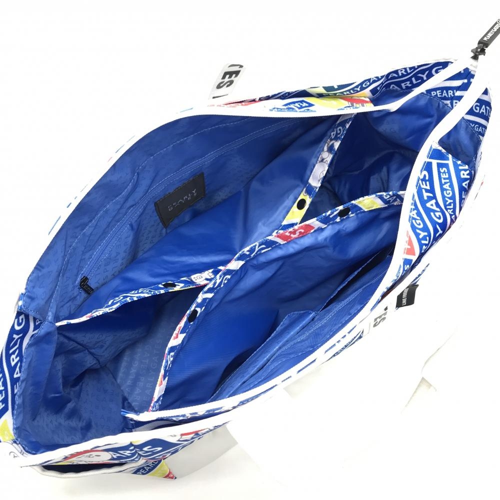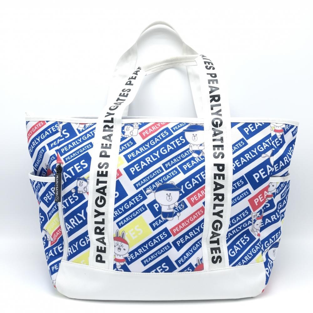 【美品】パーリーゲイツ×LINE FRIENDS ロッカーバッグ 白×ブルー ロゴ総柄 ビッグトートバッグ 複数ポケット ゴルフ PEARLY GATES