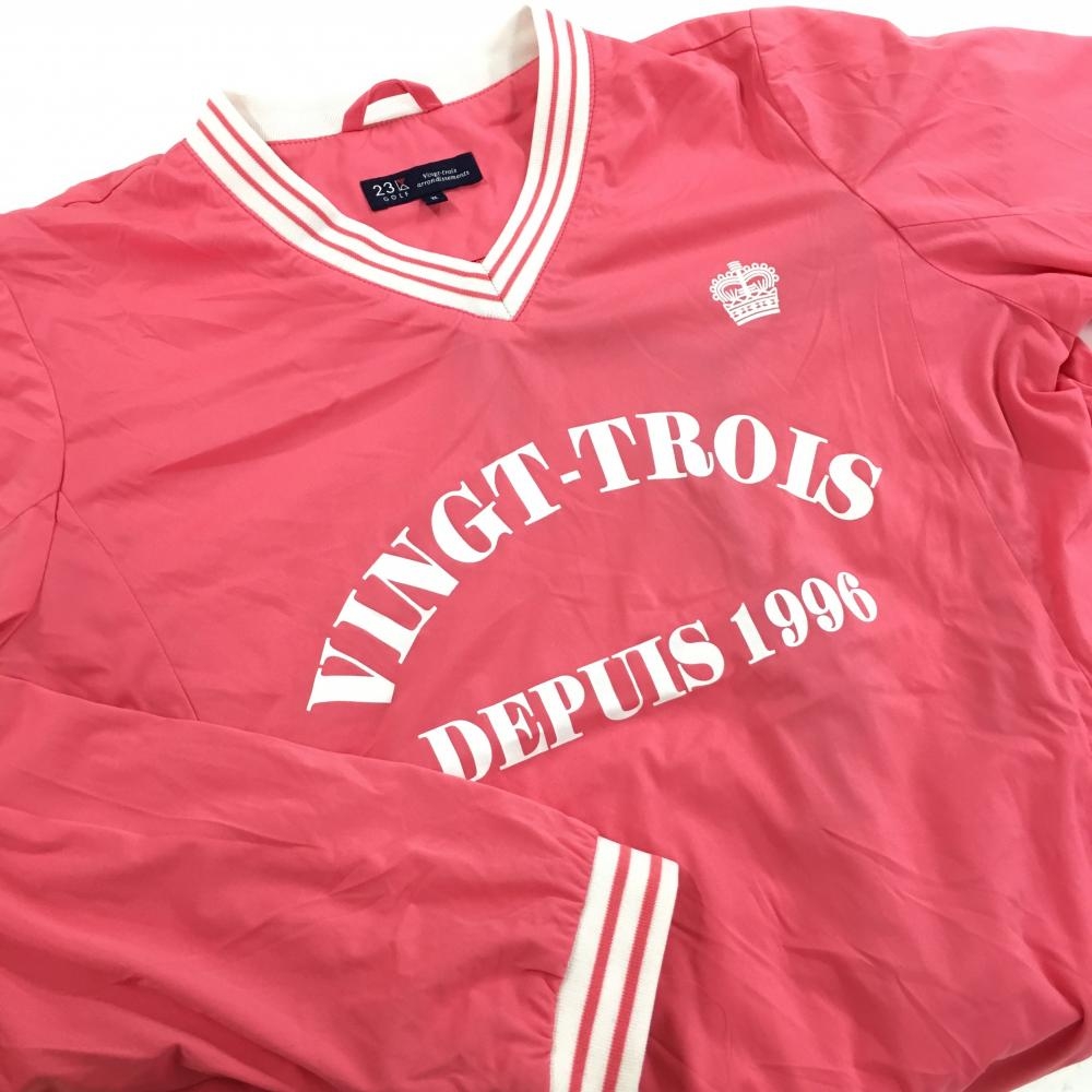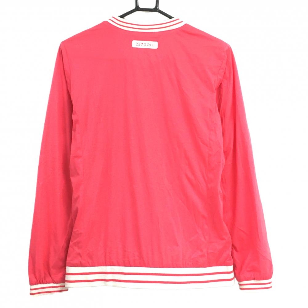 【美品】23区ゴルフ スニード ピンク×白 ネック・袖口ライン 裏地メッシュ サイドジップ ブルゾン レディース II(L) ゴルフウェア 23区