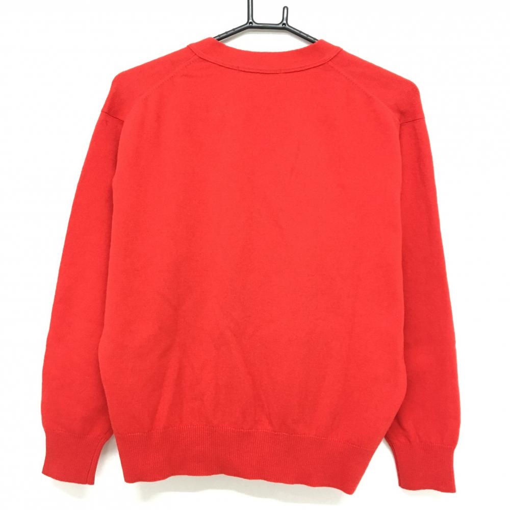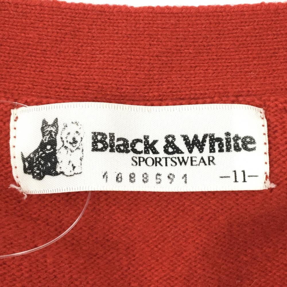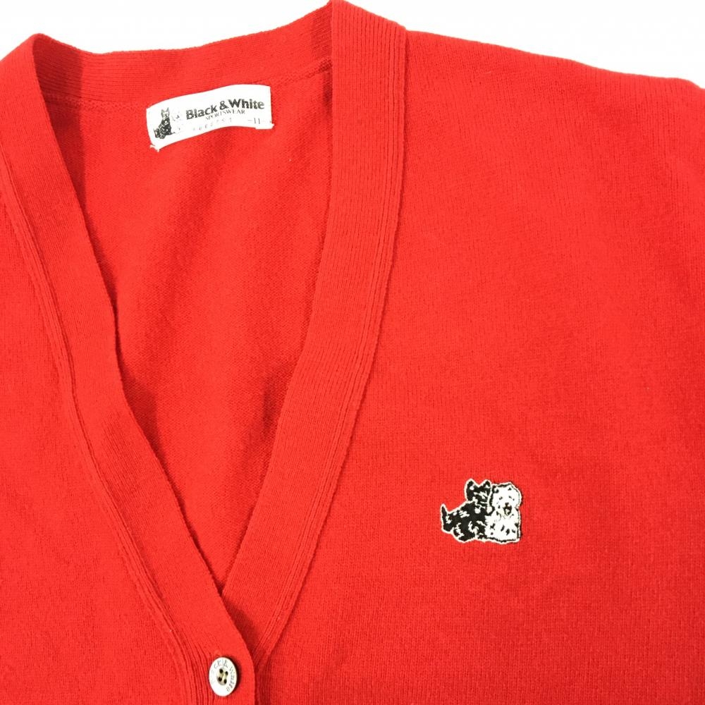 【美品】ブラックアンドホワイト カーディガン レッド ロゴ刺しゅう ウール混 レディース 11 ゴルフウェア Black&White