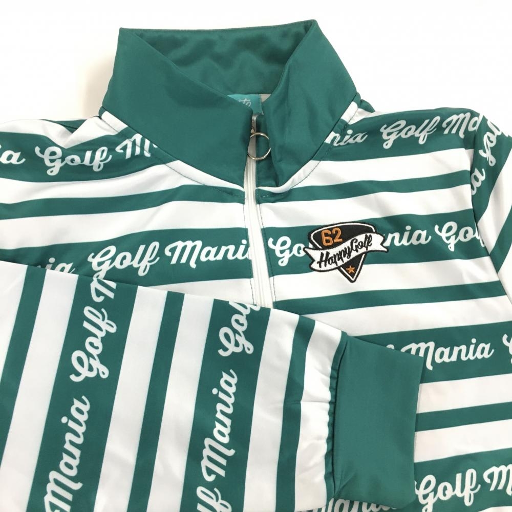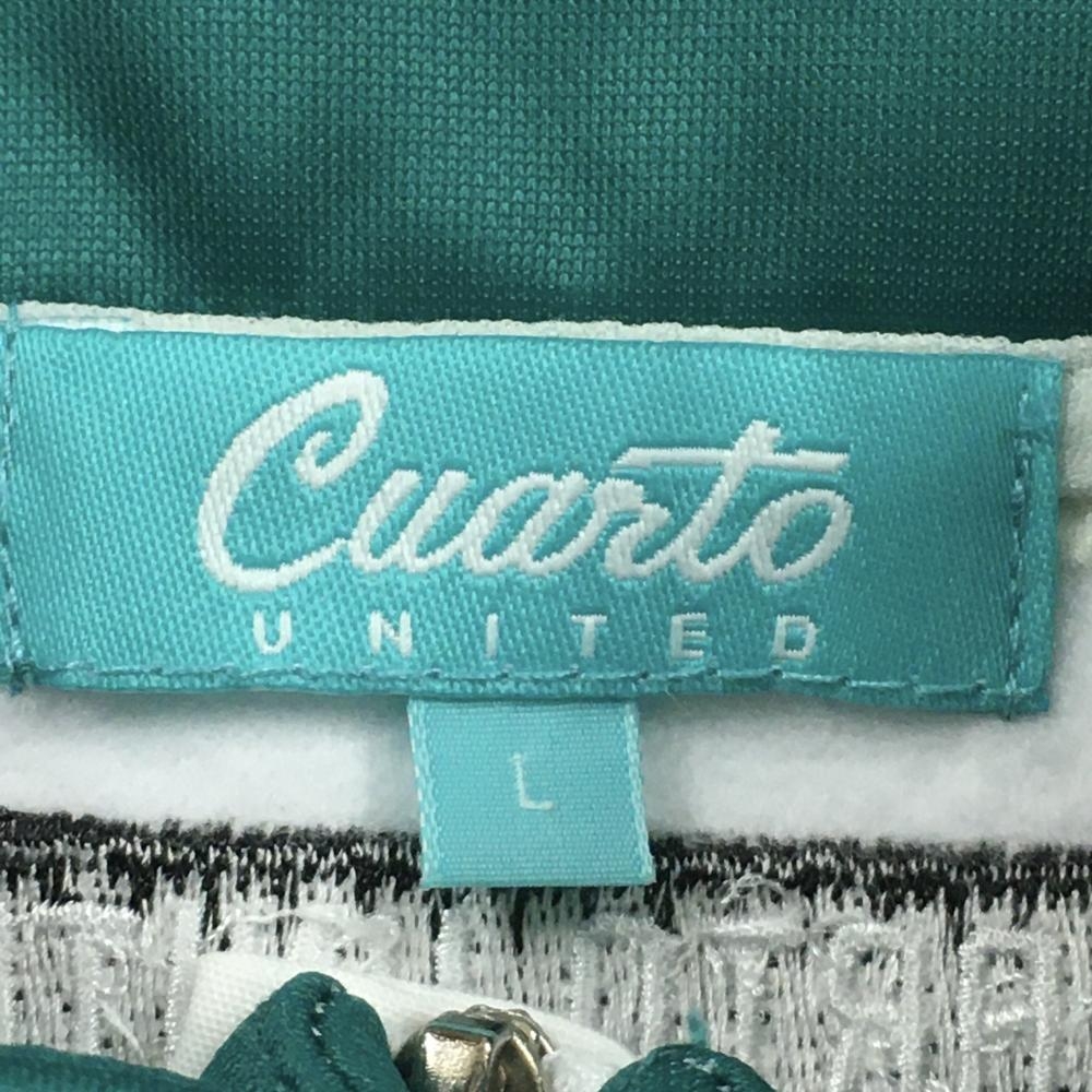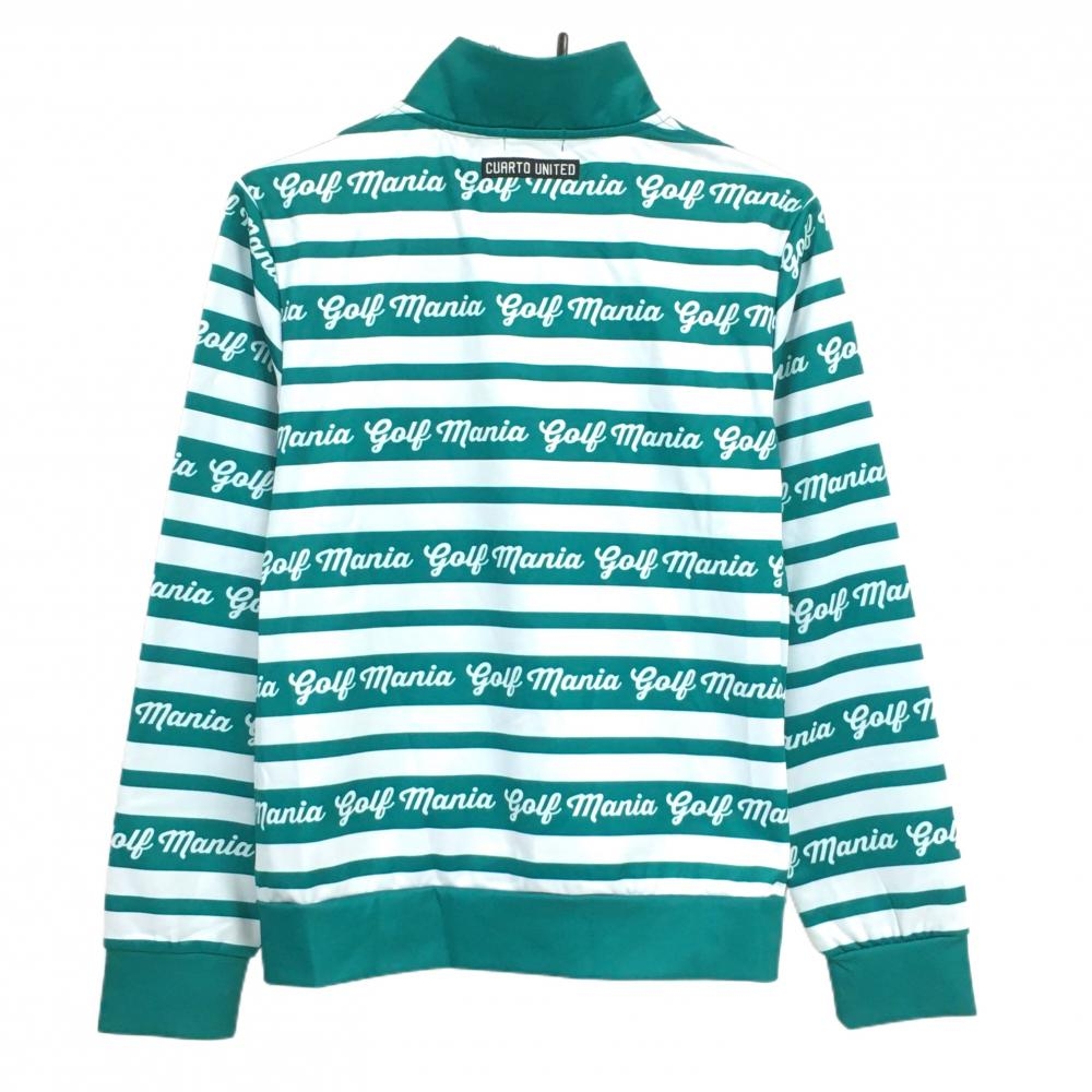 【超美品】クアルトユナイテッド 長袖ハイネックシャツ グリーン×白 ボーダー ハーフジップ レディース L ゴルフウェア CUARTO UNITED