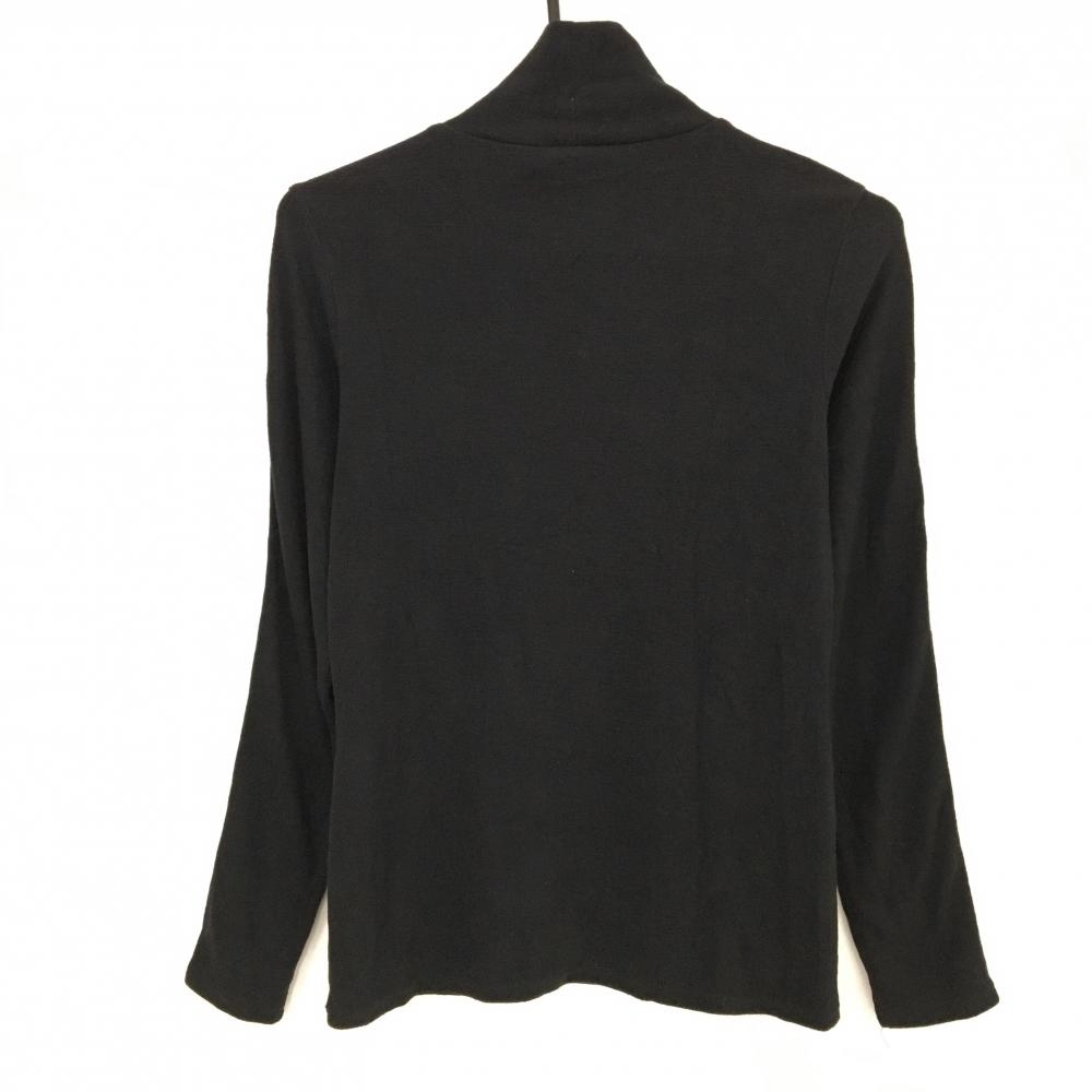 フィラゴルフ 長袖ハイネックシャツ 黒×白 袖ライン ワッペン 微起毛 レディース M ゴルフウェア FILA GOLF