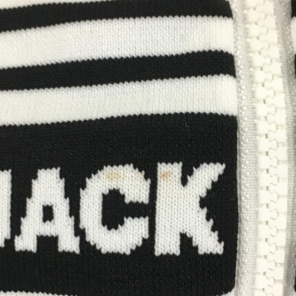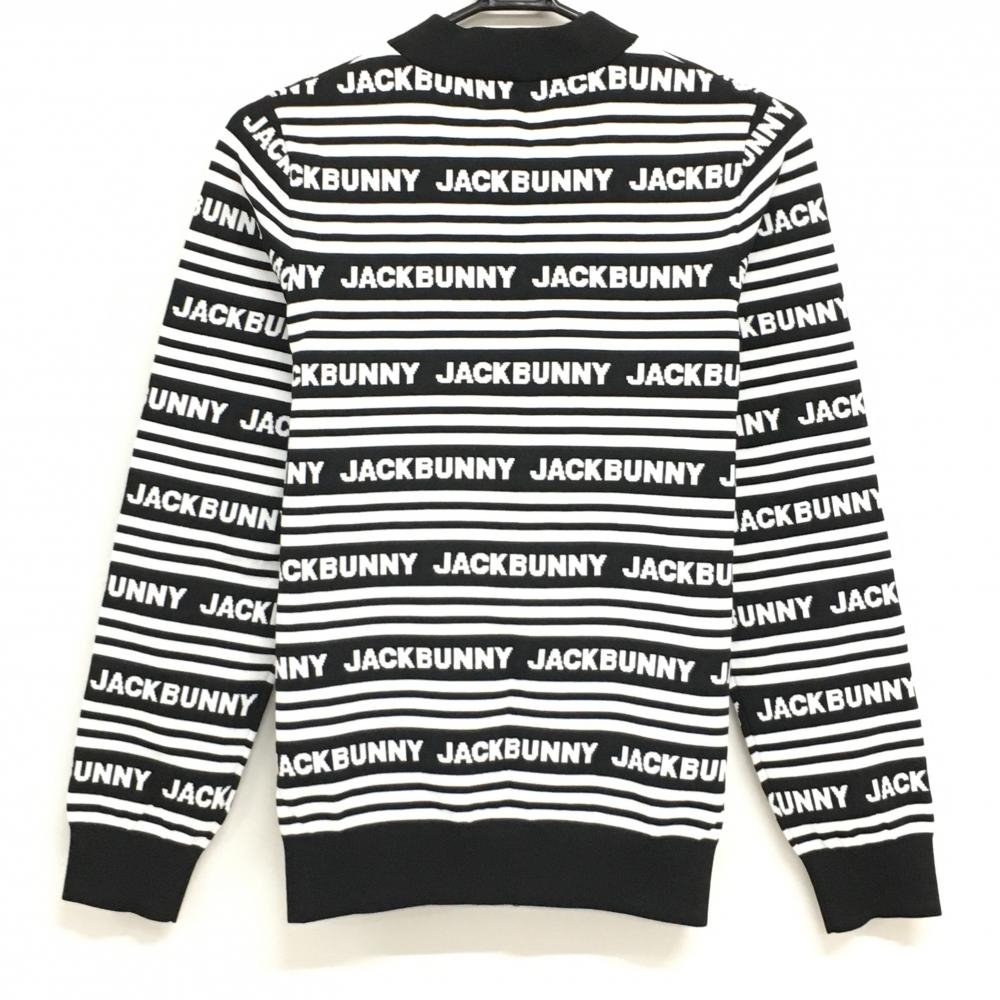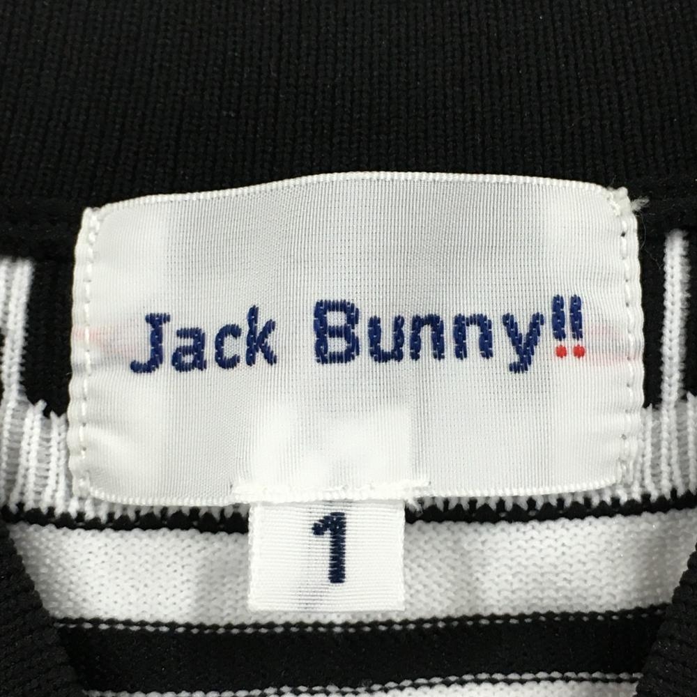 【美品】ジャックバニー ニットブルゾン 白×黒 ボーダー ロゴライン レディース 1(M) ゴルフウェア Jack Bunny