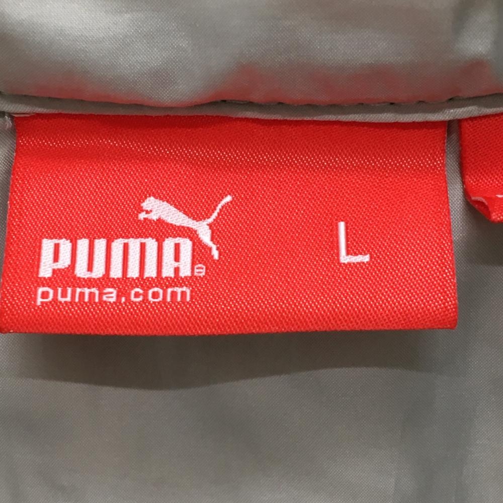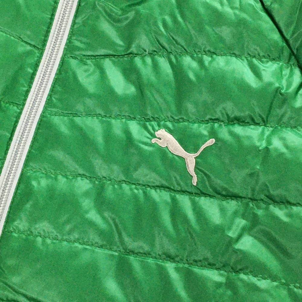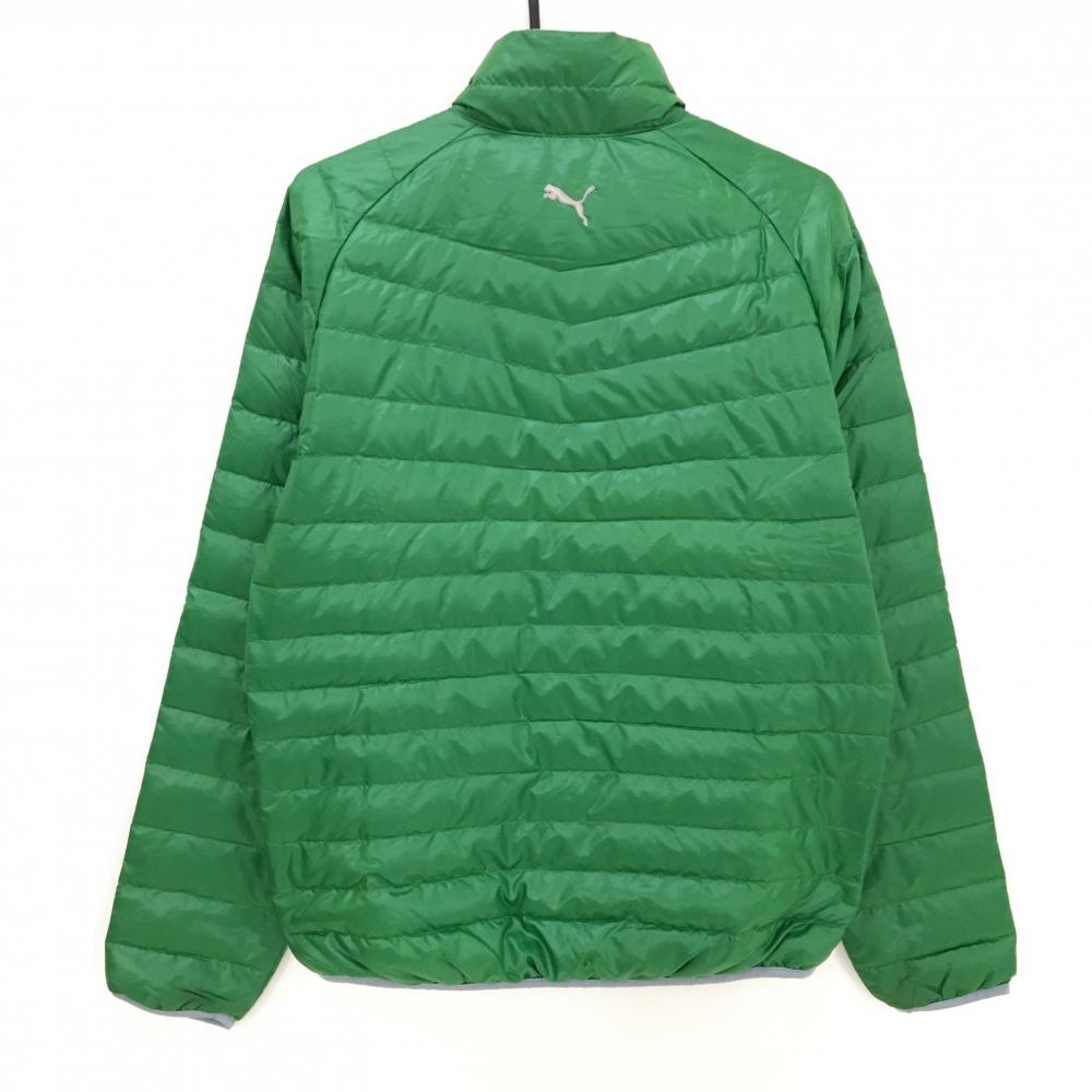 【美品】プーマ ダウンジャケット グリーン×グレー ロゴ刺しゅう メンズ L ゴルフウェア PUMA