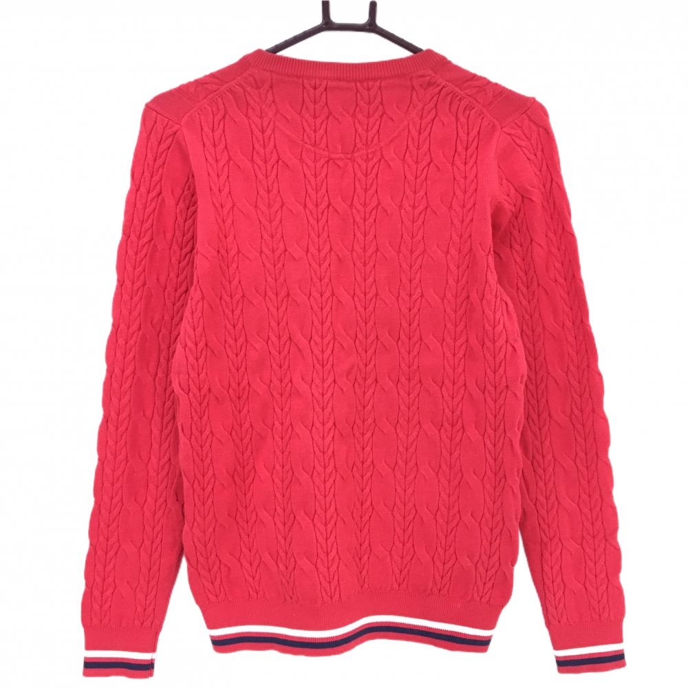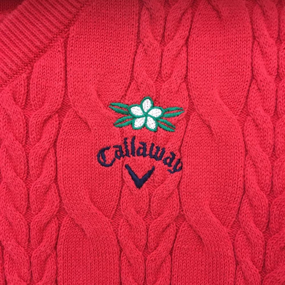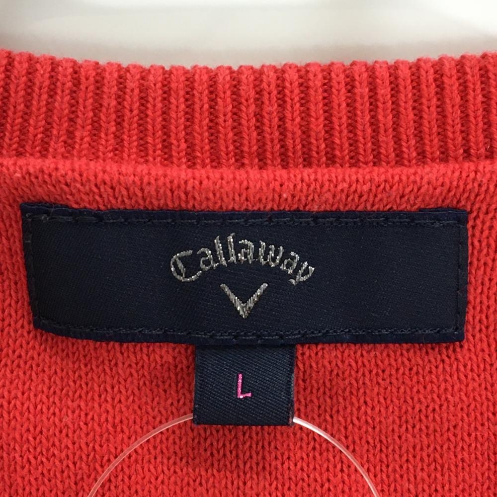 【美品】キャロウェイ セーター レッド ケーブル編み ニット アクリル混 Vネック レディース L ゴルフウェア Callaway