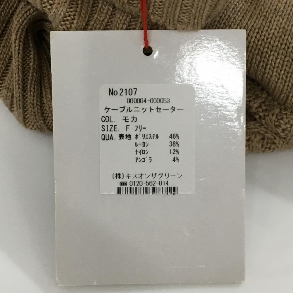【新品】キスオンザグリーン タートルネックセーター ブラウン 袖ロゴ刺しゅう ニット レディース F ゴルフウェア kiss on the green