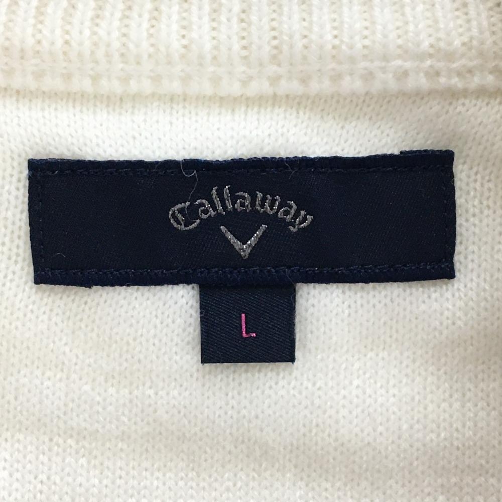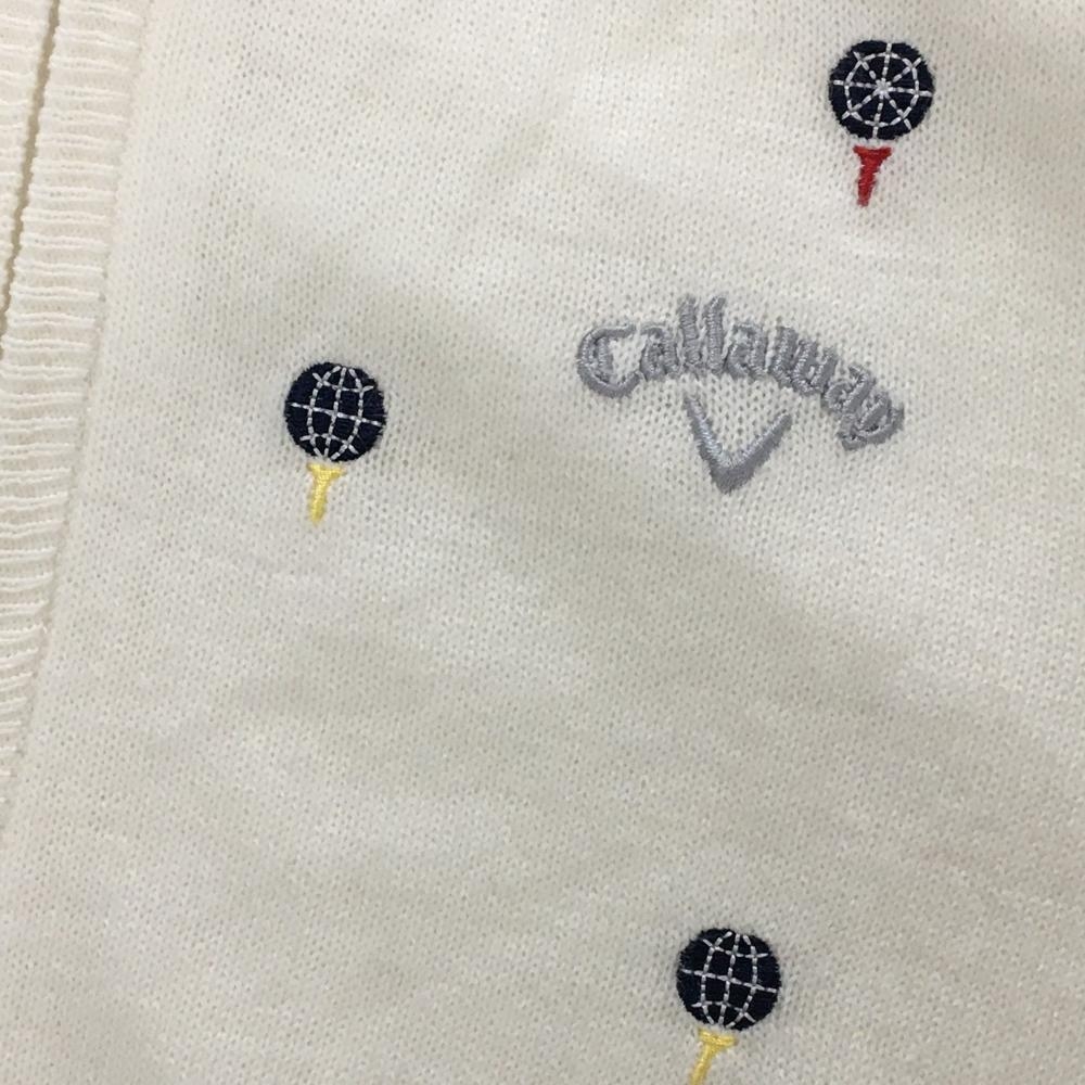 【超美品】キャロウェイ ニットジャケット 白×ネイビー 前身頃刺しゅう総柄 レディース L ゴルフウェア Callaway