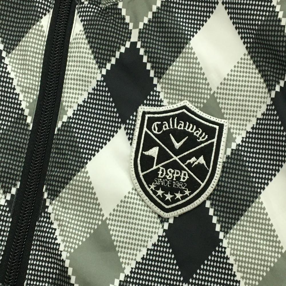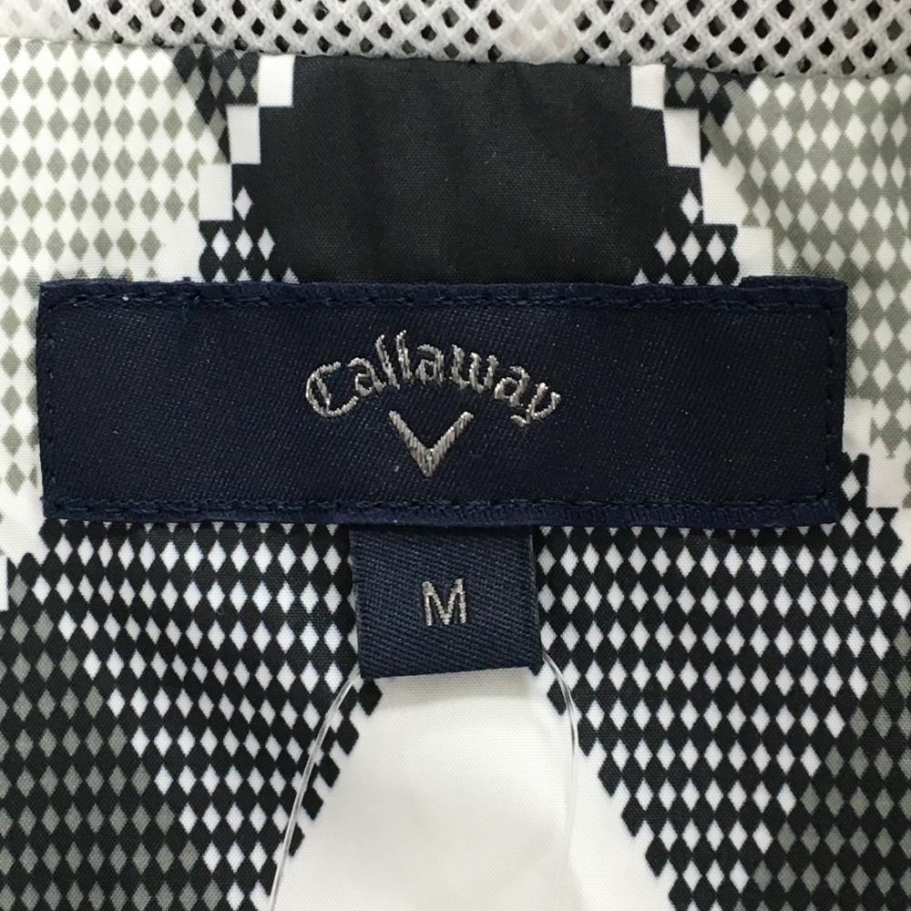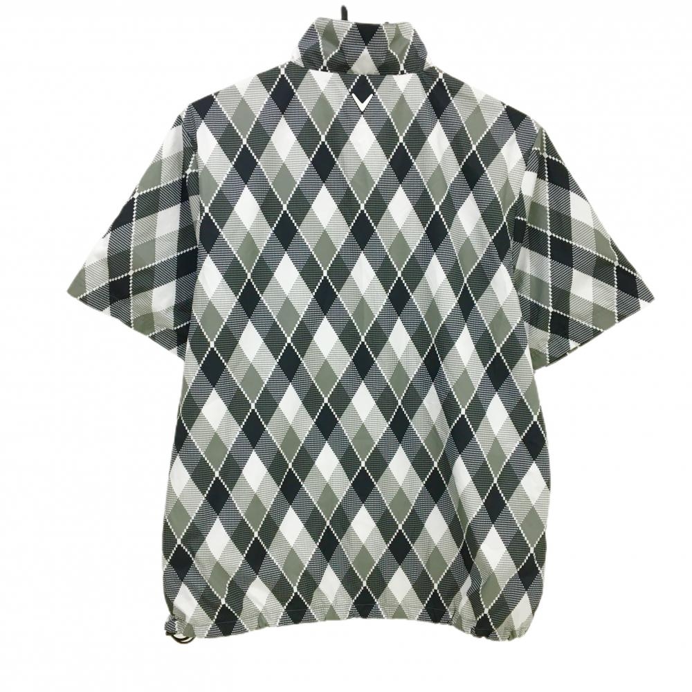 【超美品】キャロウェイ 半袖ブルゾン 白×グレー ダイヤ総柄 ハーフジップ 裏地メッシュ メンズ M ゴルフウェア Callaway