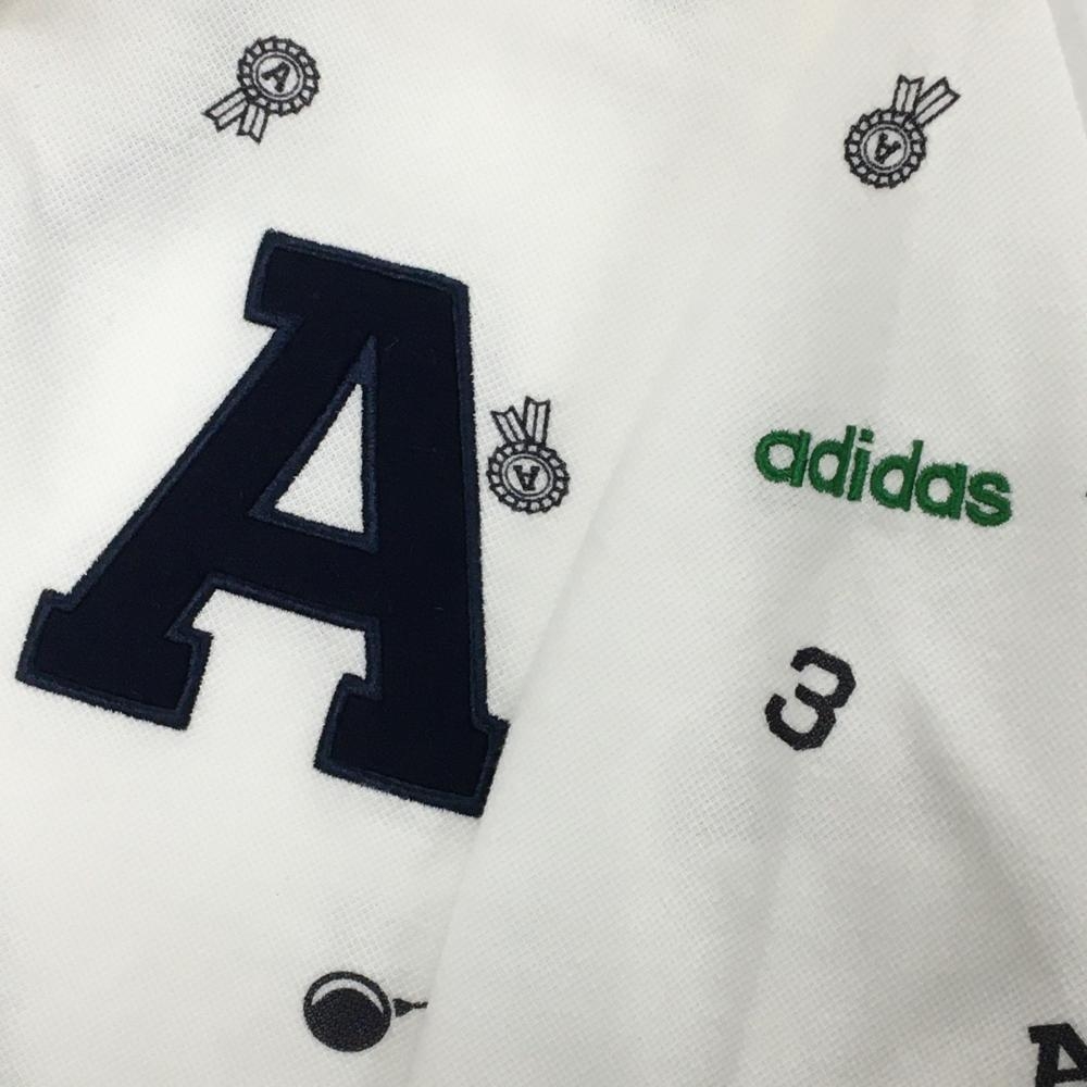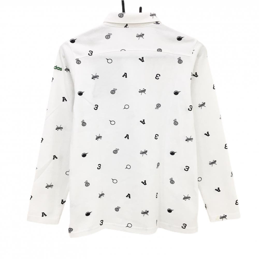 アディダス 長袖ポロシャツ 白×ネイビー 総柄 レディース L/G ゴルフウェア adidas