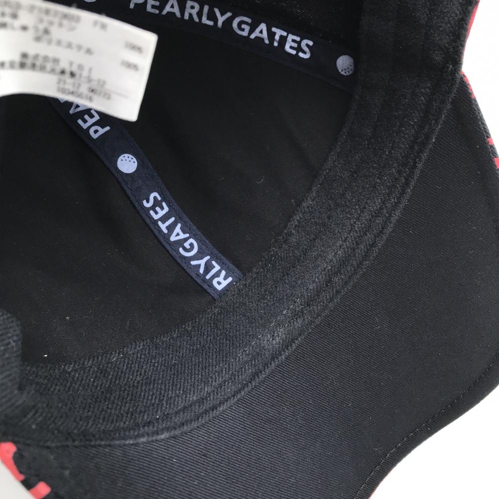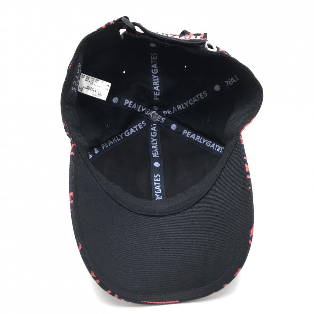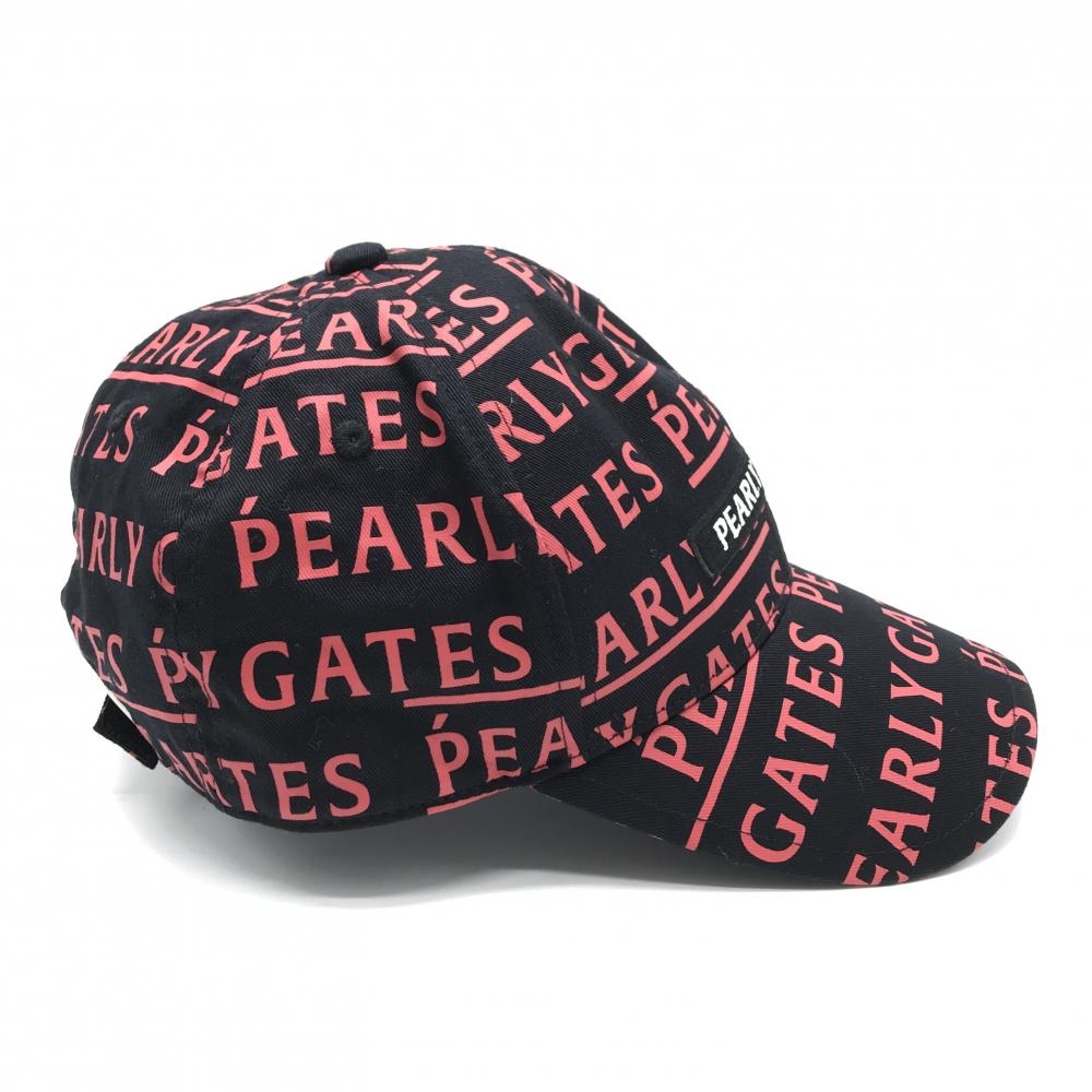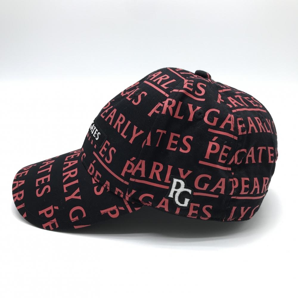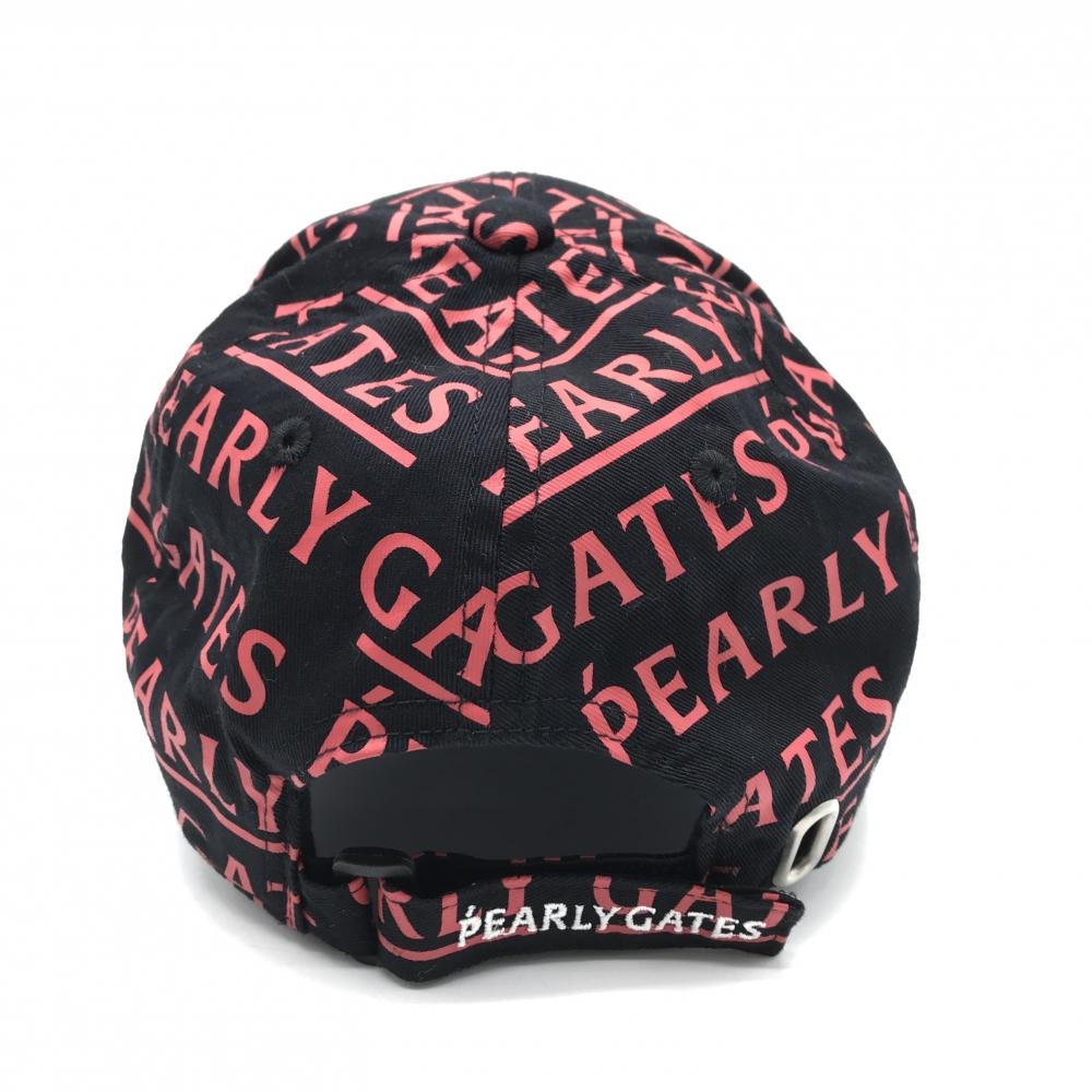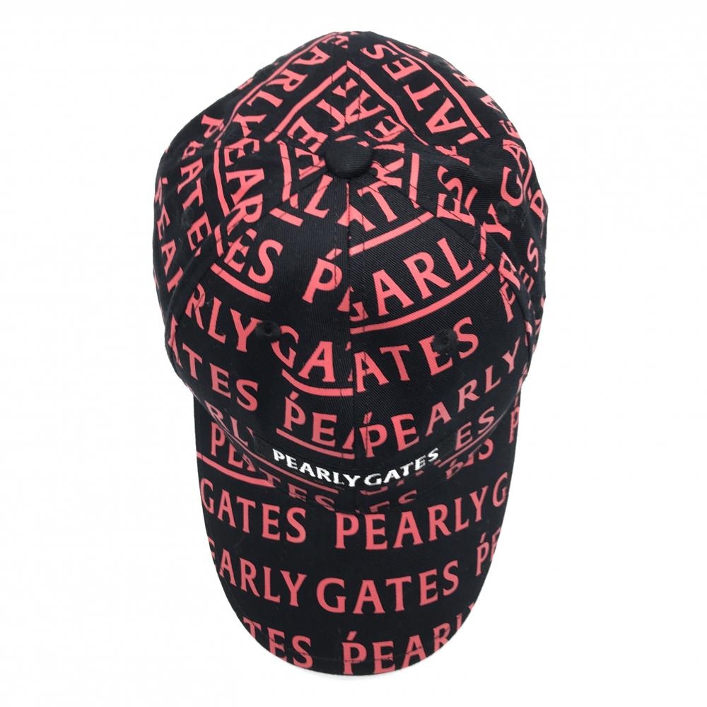 【美品】パーリーゲイツ キャップ 黒×レッド ロゴ総柄 FR ゴルフウェア PEARLY GATES