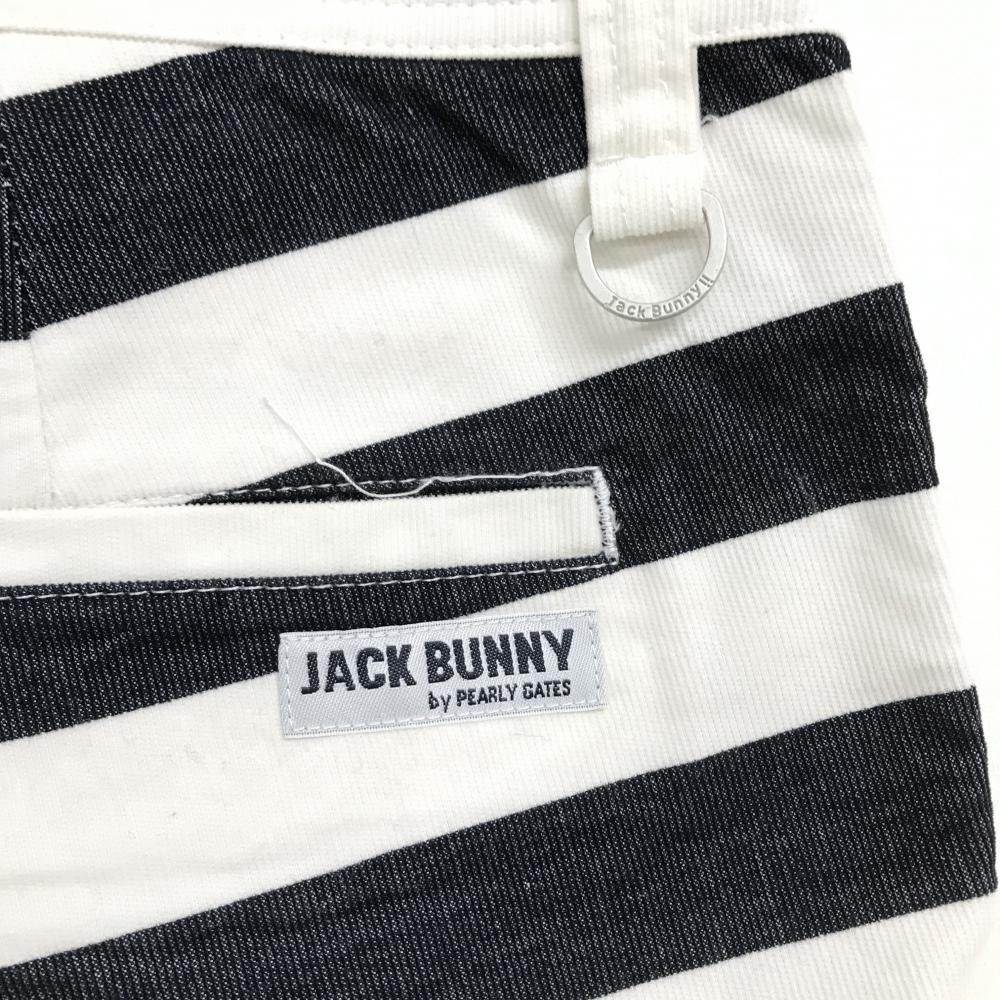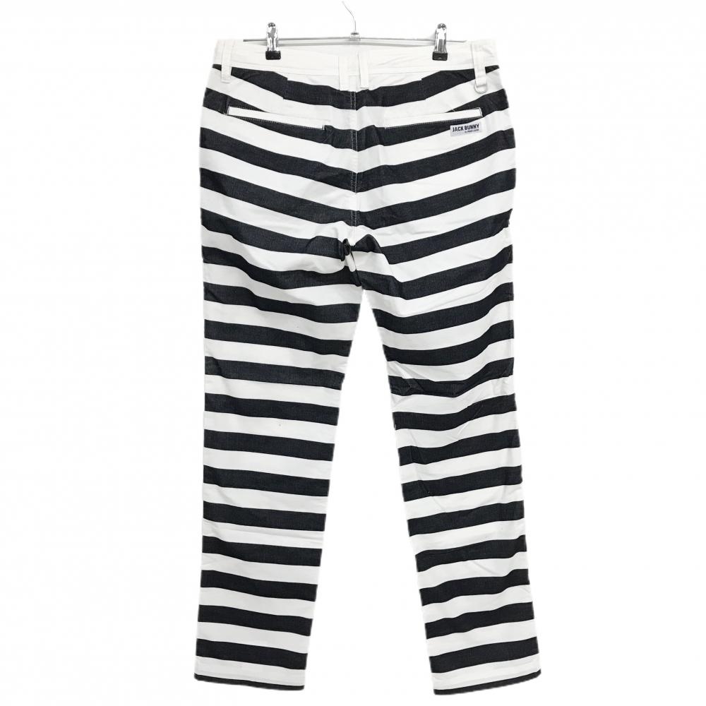 【美品】ジャックバニー パンツ 白×ネイビー ボーダー ストレッチ メンズ 6(XL) ゴルフウェア Jack Bunny