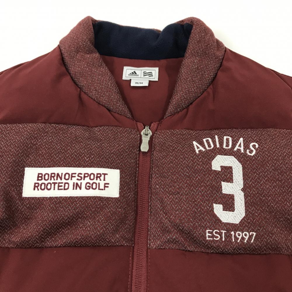 【美品】アディダス 中綿ベスト ダークレッド×グレー 一部ヘリンボーン ロゴ白 レディース M/M ゴルフウェア adidas