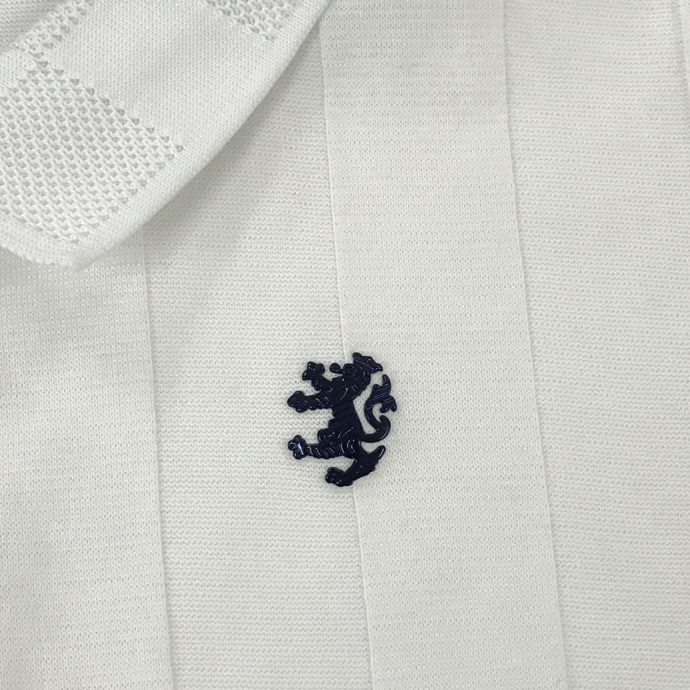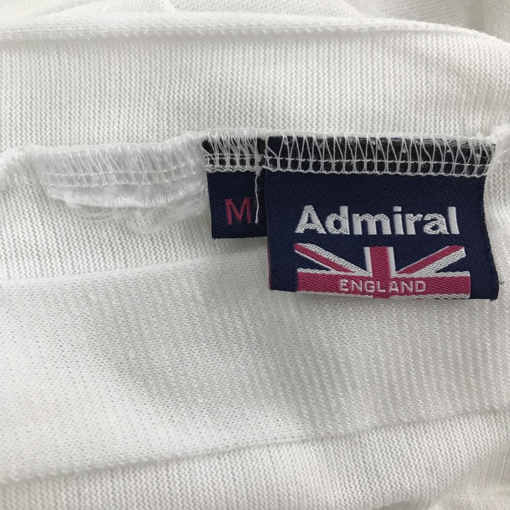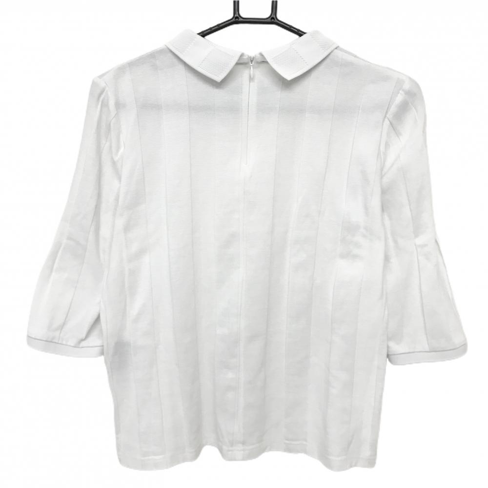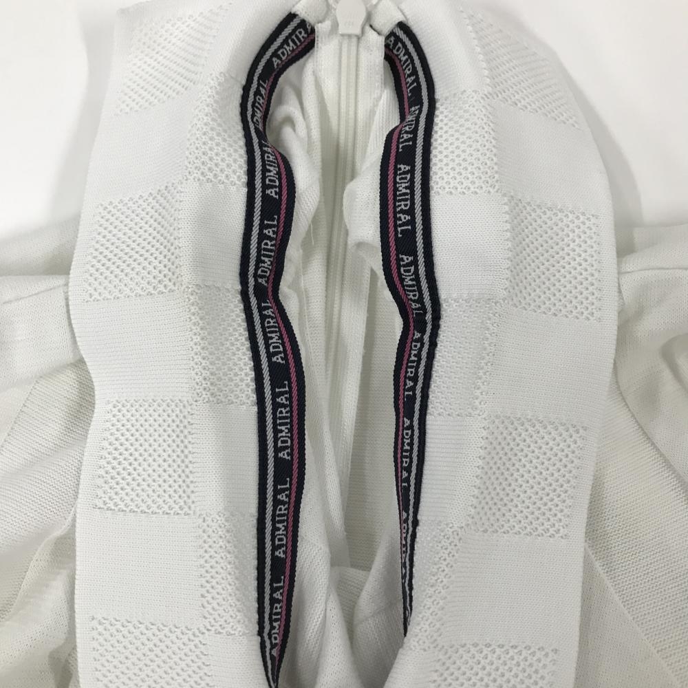 【美品】アドミラル 襟付き長袖シャツ 白 ストライプ織生地 七分袖 後ろハーフジップ レディース M ゴルフウェア Admiral