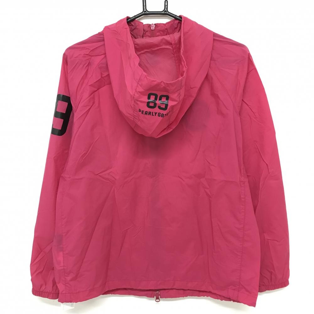 パーリーゲイツ ナイロンジップパーカー ピンク×黒 ロゴプリント 裾ドローコード 薄手 レディース 1(M) ゴルフウェア PEARLY GATES