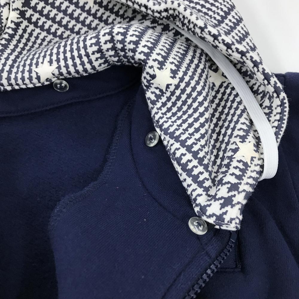 キャロウェイ 2WAYフード付ジャケット ネイビー×白 フードグレンチェック×星柄 裏起毛 ベア レディース L ゴルフウェア Callaway