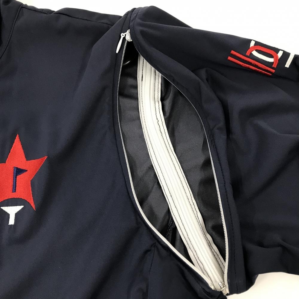 【美品】ビームスゴルフ 2WAYジャケット ネイビー×レッド 袖着脱可 ロゴ刺しゅう メンズ L ゴルフウェア BEAMS GOLF