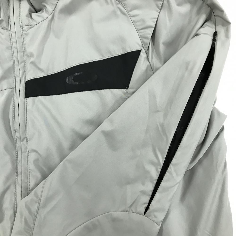 オークリー ジャケット ライトグレー×黒 ロゴ ジップポケット 裏地付 メンズ M ゴルフウェア Oakley
