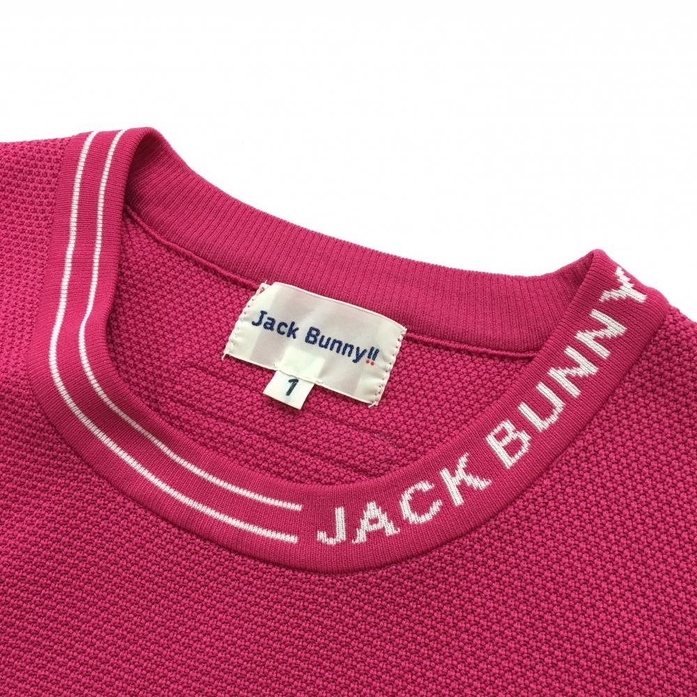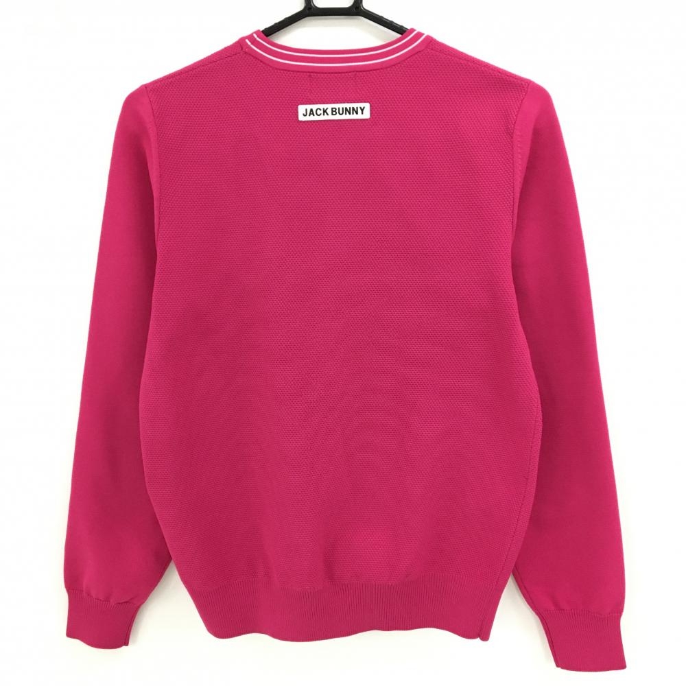 【美品】ジャックバニー セーター ピンク×白 ネックロゴ 袖星刺しゅう ポリエステル100% レディース 1(M) ゴルフウェア Jack Bunny