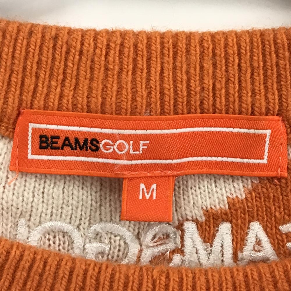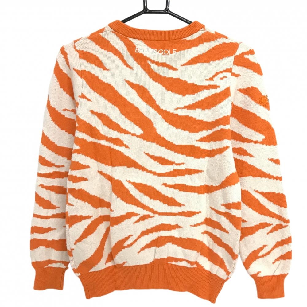 ビームスゴルフ セーター オレンジ×白 ゼブラ柄 ウール・カシミヤ混 レディース M ゴルフウェア BEAMS GOLF