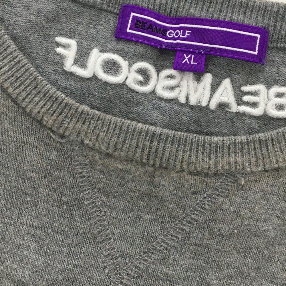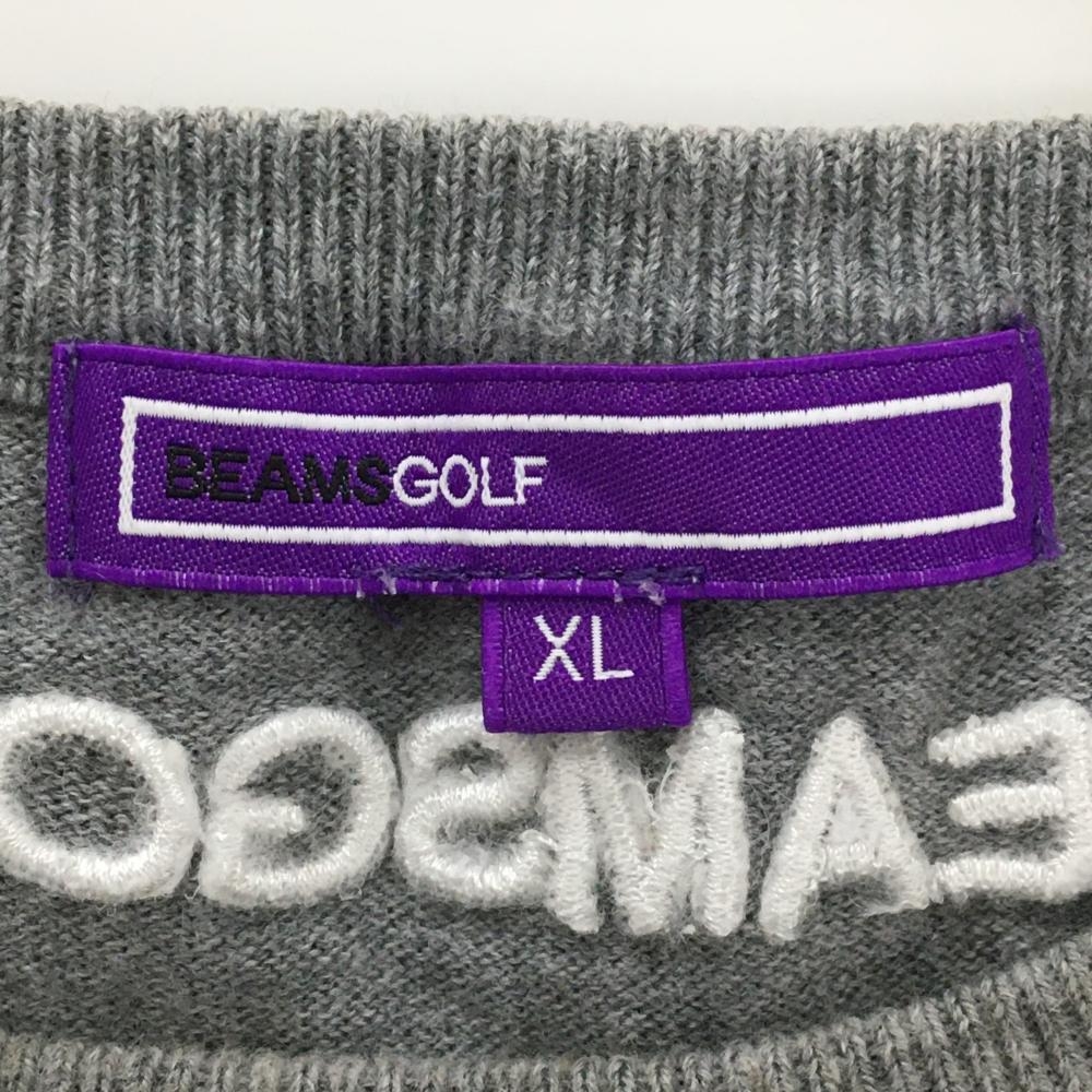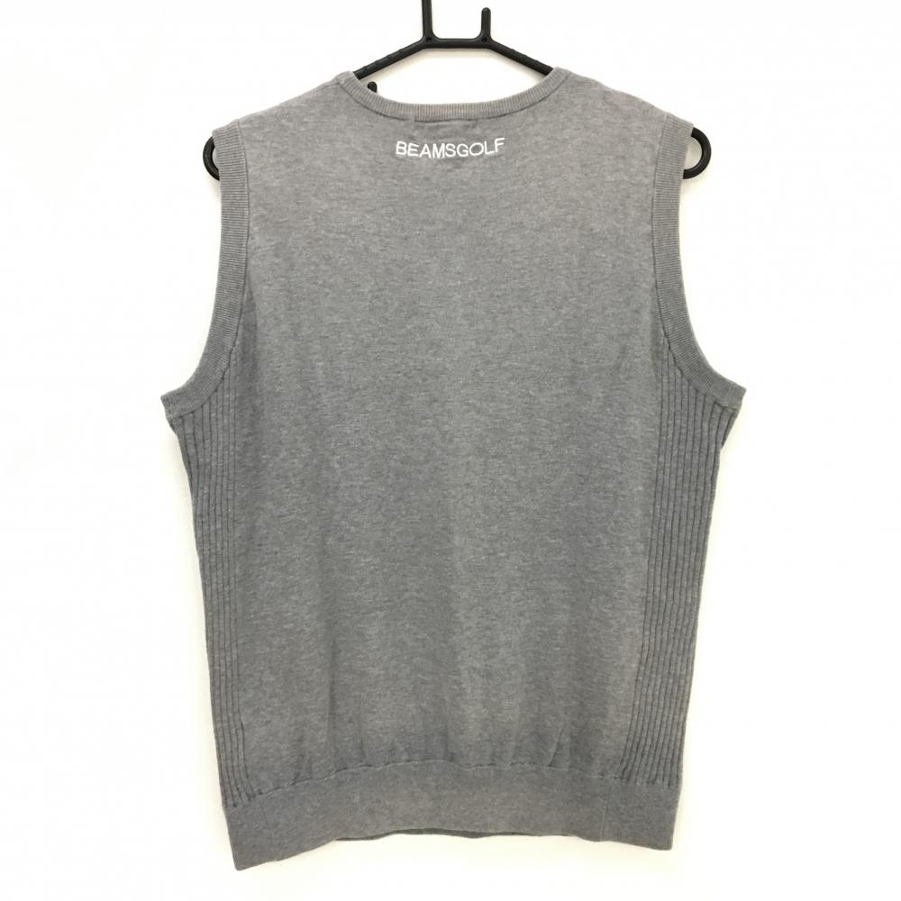 ビームスゴルフ ニットベスト 杢グレー×白 胸ロゴ カシミヤ混 メンズ XL ゴルフウェア BEAMS GOLF